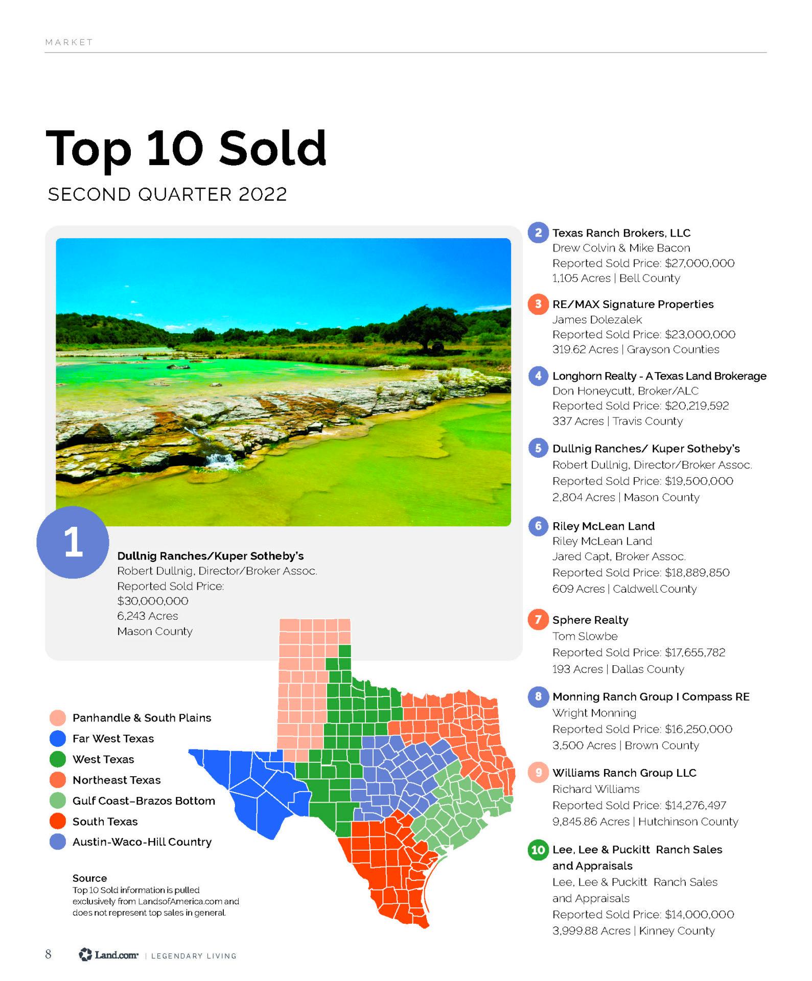 Texas Ranch Brokers was the second real estate agency in sales for the second quarter of 2022 across the entire state of Texas