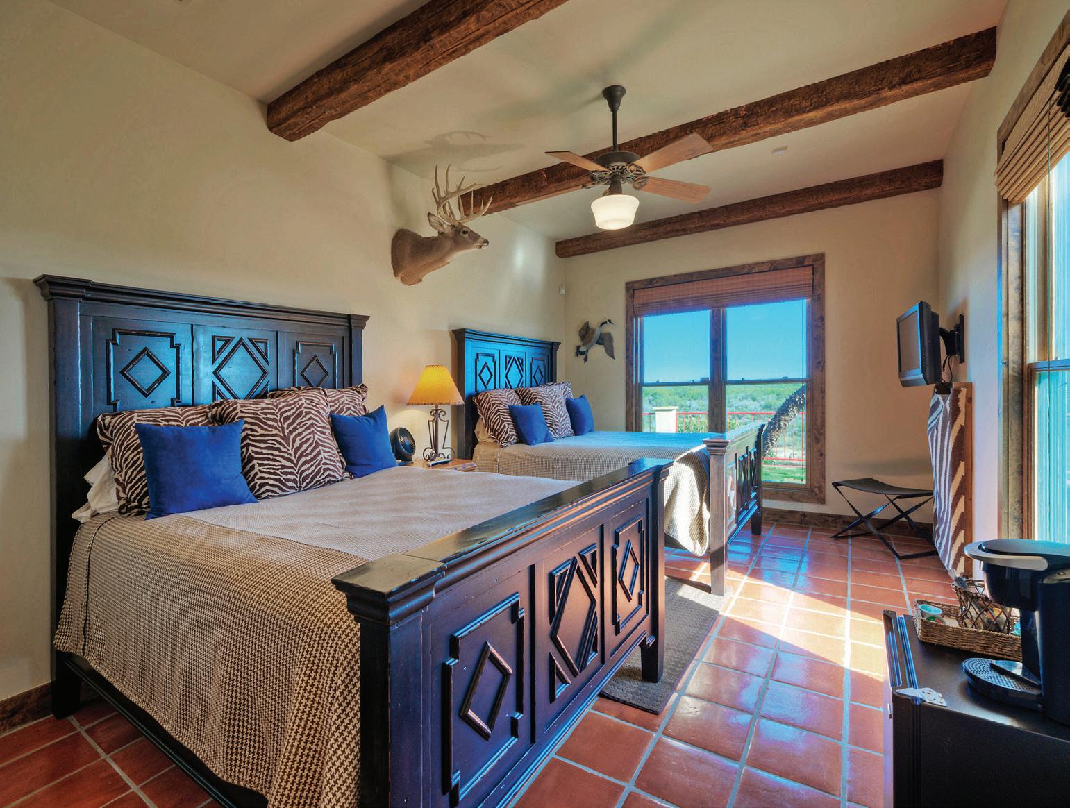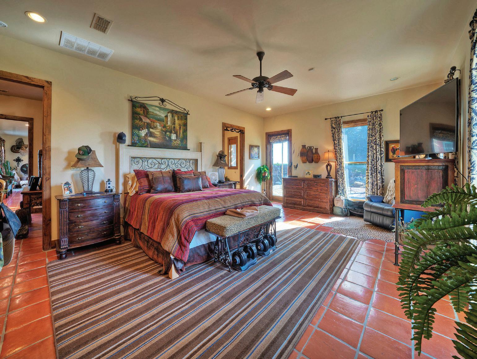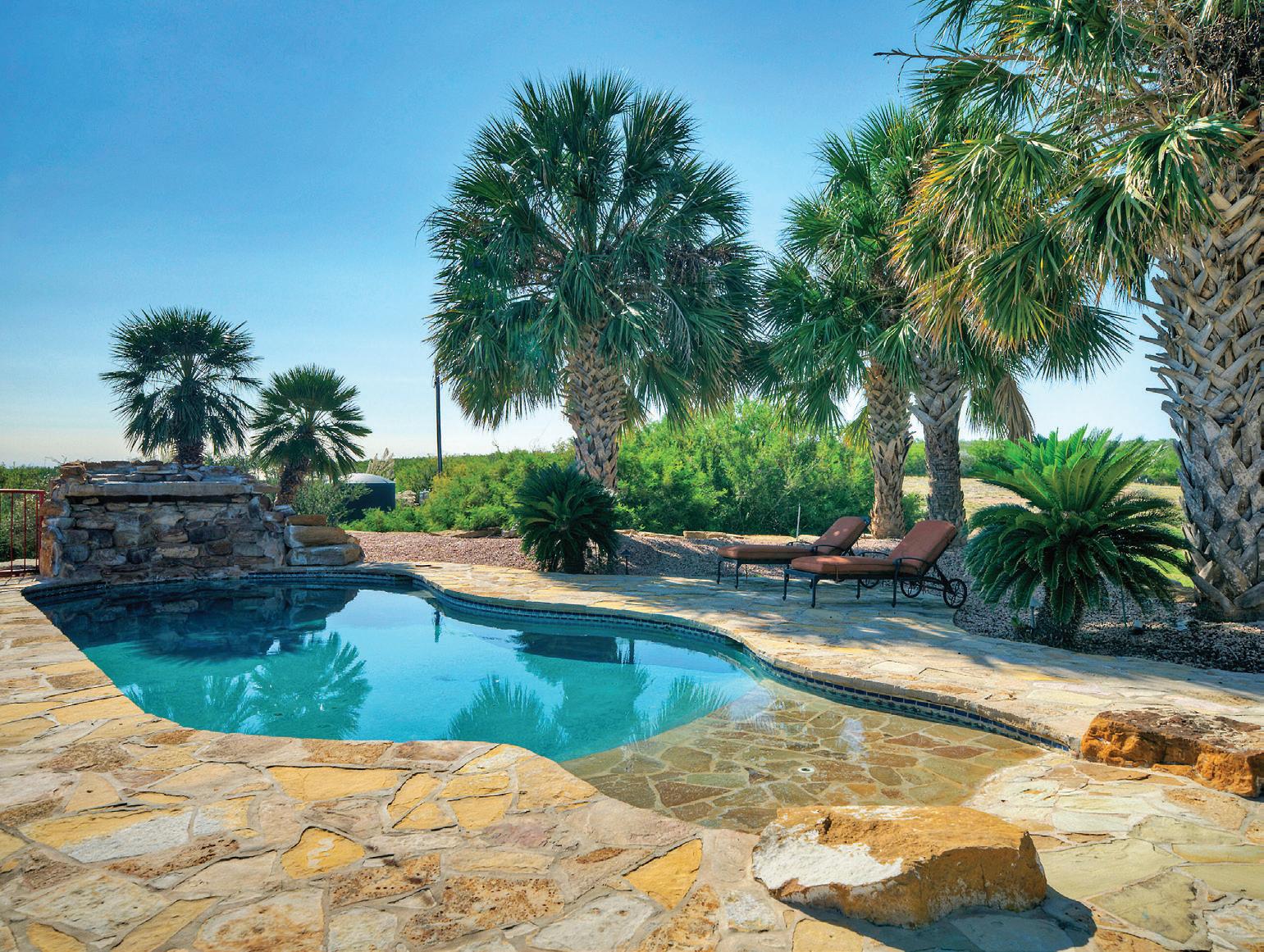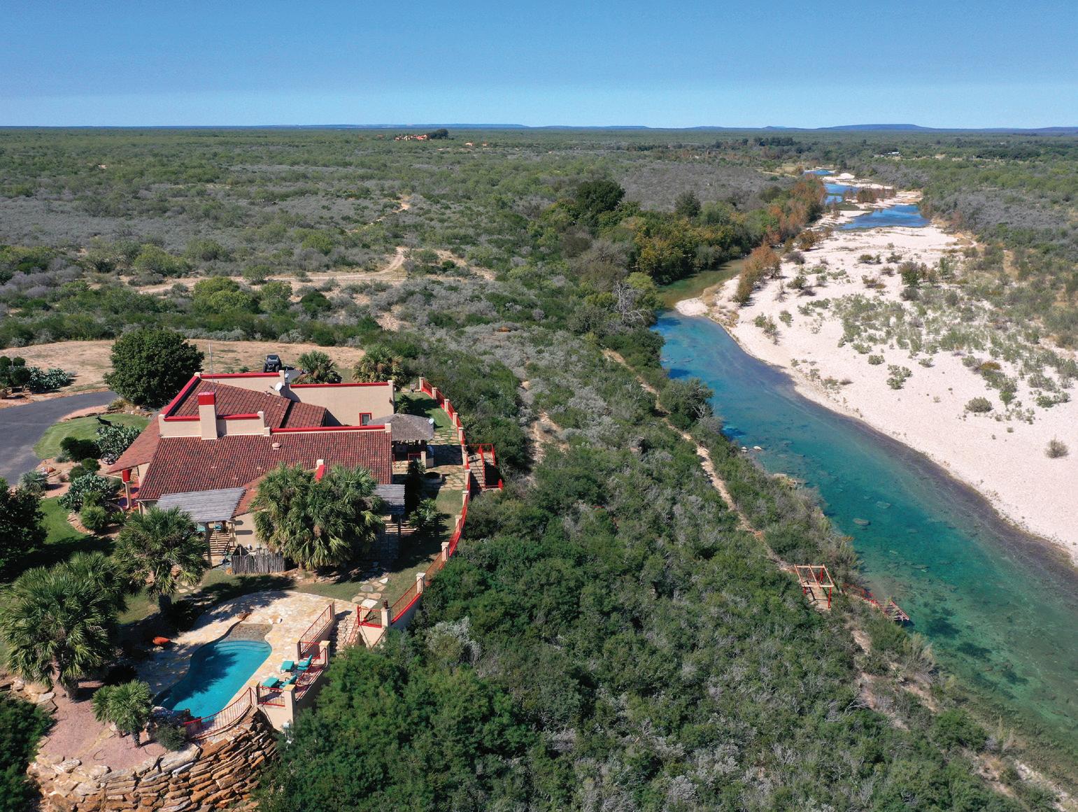 MAIN HOME: The paved road to the main house passes through dense stands of native brush and mesquite, ending into a lush compound, overlooking the crystal-clear Nueces River. This setting contains a spectacular Hacienda with expansive patios, outdoor kitchen, and two guest casitas, all overlooking one of the most scenic rivers in the state of Texas. The single-story main home was built with entertaining in mind. The front entry opens to the living area with dramatic ceilings, a grand fireplace, massive, exposed beams, and numerous windows offering natural light and views. The commercial grade kitchen is highlighted by Mexican tile and utilizes stainless appliances as well as a Wolf brand stove. The spacious dining area extends just off the kitchen, generous enough to seat a large number of guests for a formal meal. There are two large master bedrooms at either end of the home, connected outdoor porches, enormous ensuite bathrooms, and closets. Two separate casitas are connected to the main house which includes a bedroom and bathroom each offering ample space for guests. The back patio is equipped for outdoor enjoyment with a thatched palapa, bar, fire pit, and a swimming pool with rock waterfall, which provides a place to get out of the heat and enjoy this property all year long.