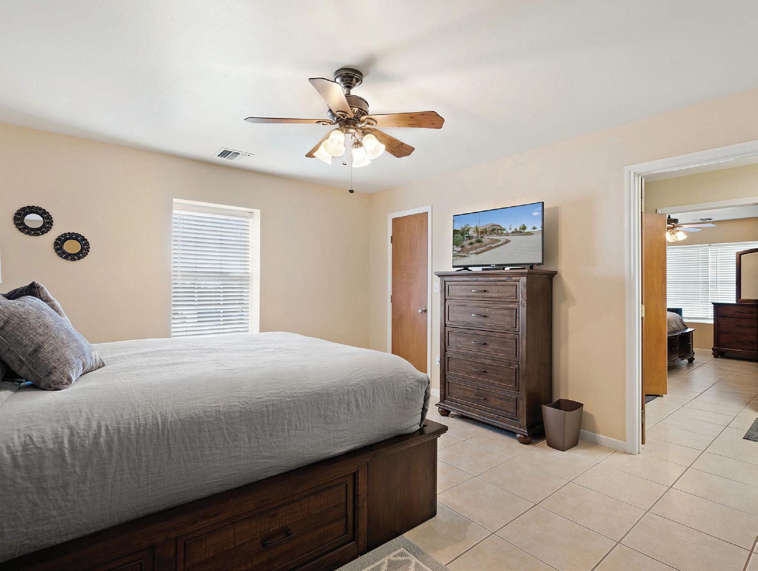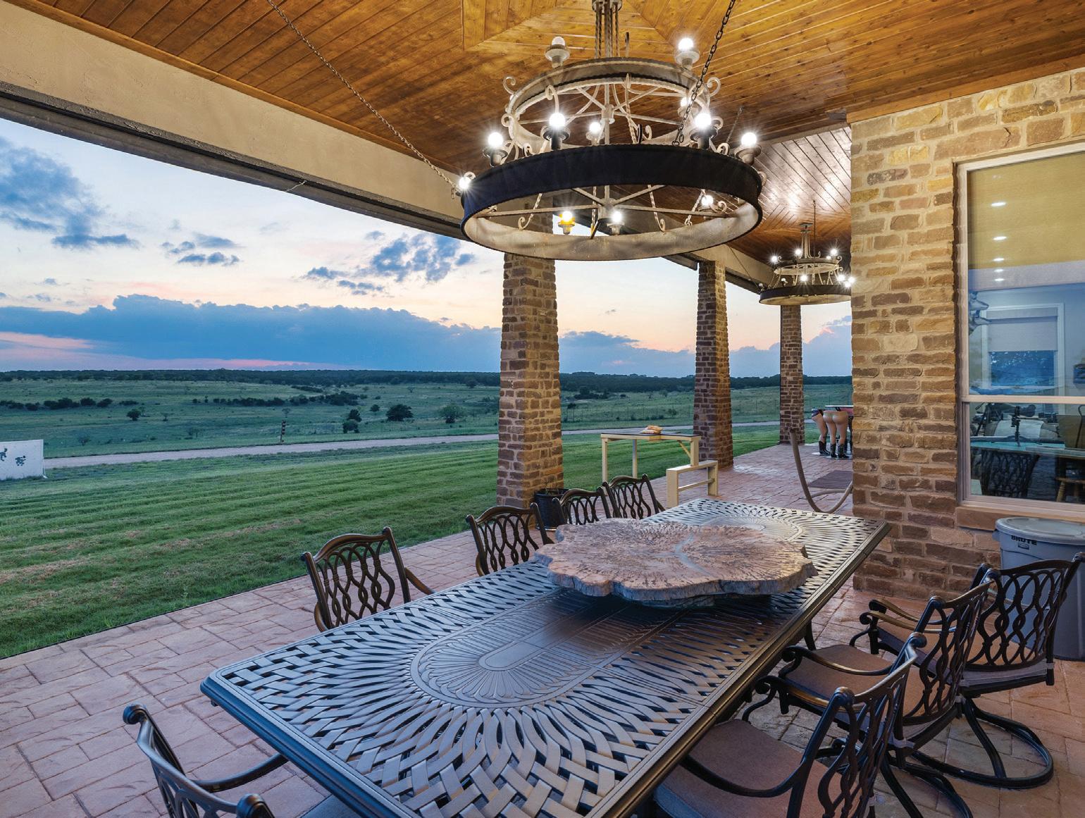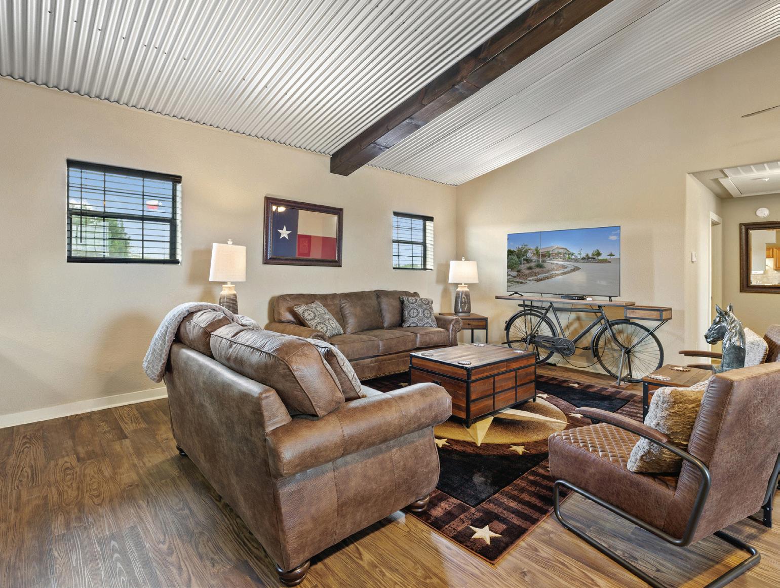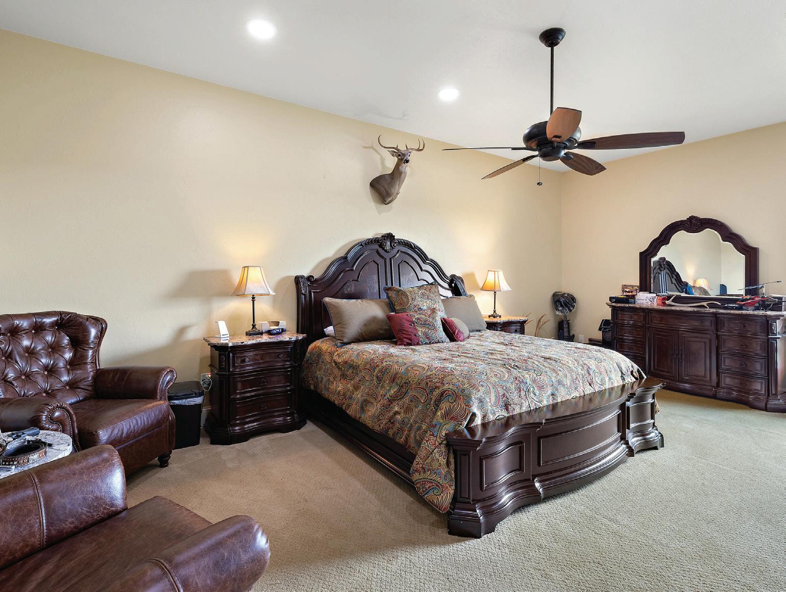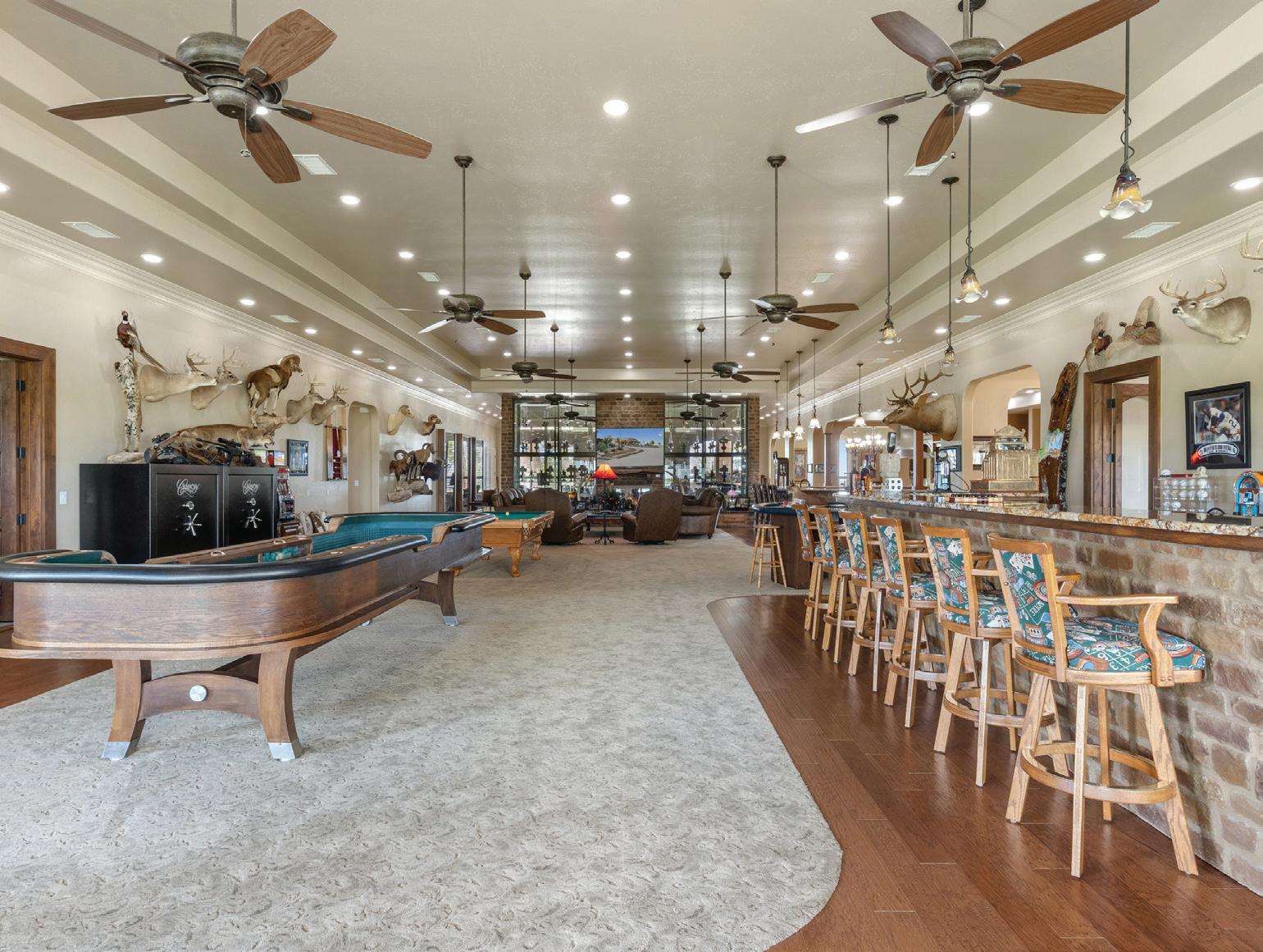 The crown jewel of the ranch is undoubtedly the spectacular main house. A true masterpiece, this stunning home showcases the finest craftsmanship of its builder. Upon entering through the gate, a half-mile concrete drive leads past a beautifully lit fountain in a lake, ultimately bringing you to the grand porte cochere. Positioned on one of the highest points of the ranch, the home offers a commanding view of the entire property, allowing for breathtaking sunrises and sunsets. The single-story residence features a rock exterior, a standing seam roof, 14-foot ceilings, 25 tons of HVAC, and elegant interior design. Although it is difficult to encompass all the highlights of this remarkable home, a few noteworthy features include 4 bedrooms, 4 baths, 3 half baths, exquisite granite counters throughout, two commercially equipped kitchens, an expansive great room with a massive free-standing bar, a dining area, and a heated and cooled 5-car attached garage, and a generator that will power the house in the event of a power outage.