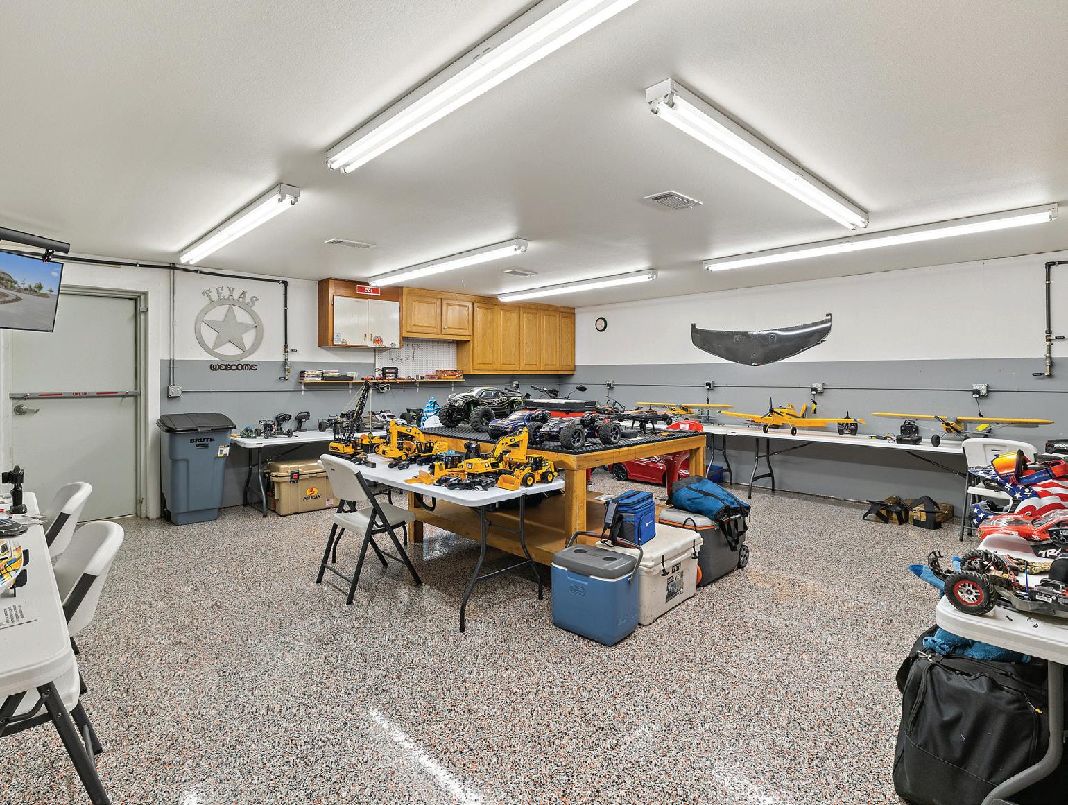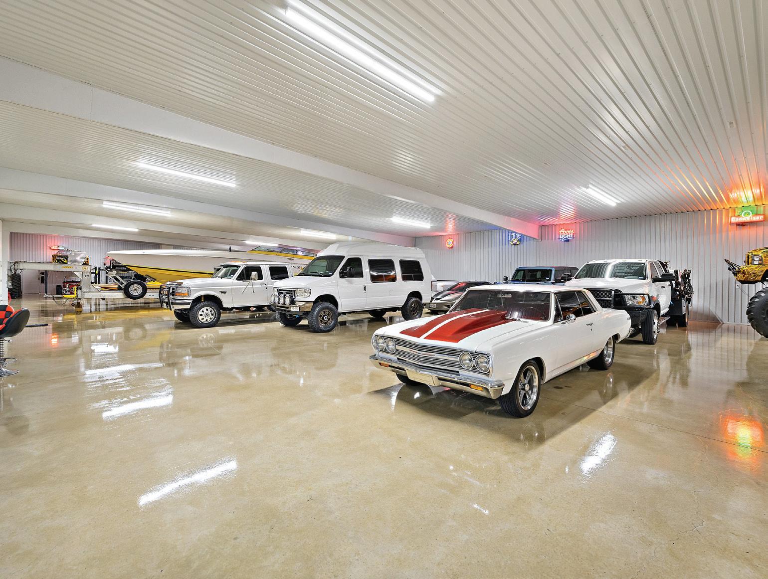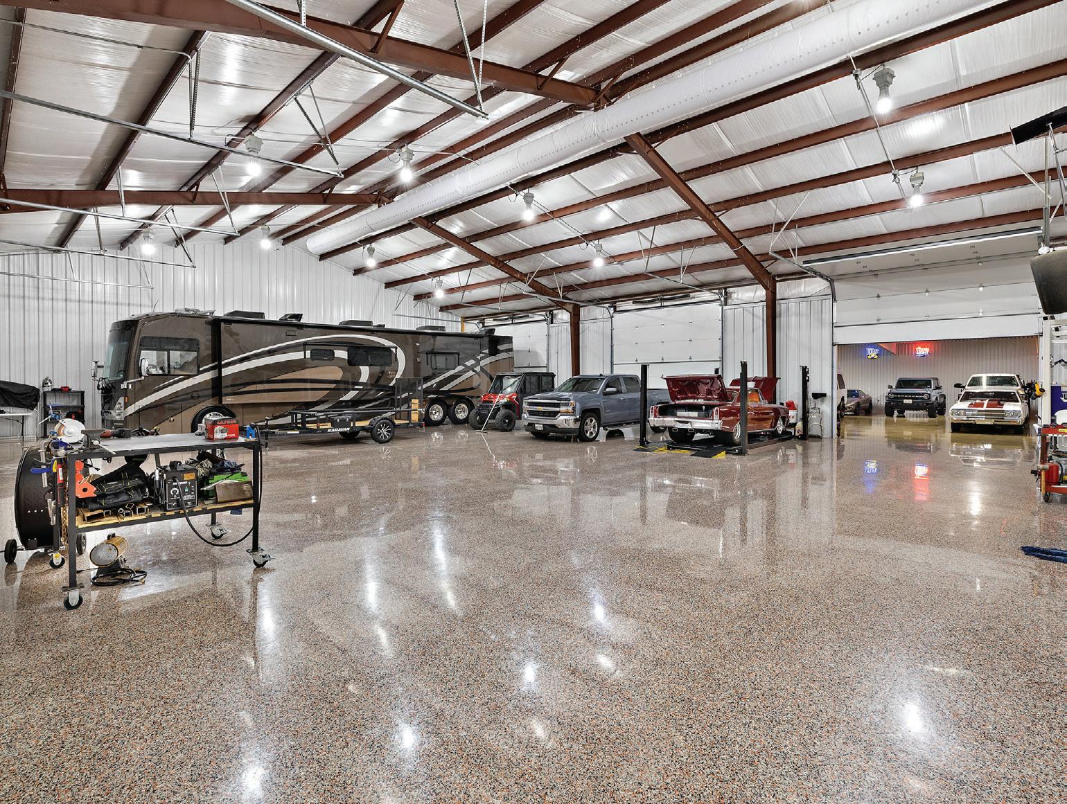 A short stroll from the main house leads to a barndominium consisting of two separate living areas. Each side offers 3 bedrooms, a full kitchen, and 2.5 baths. A covered parking area extends across the entire width of the building, providing ample space for vehicles and equipment.