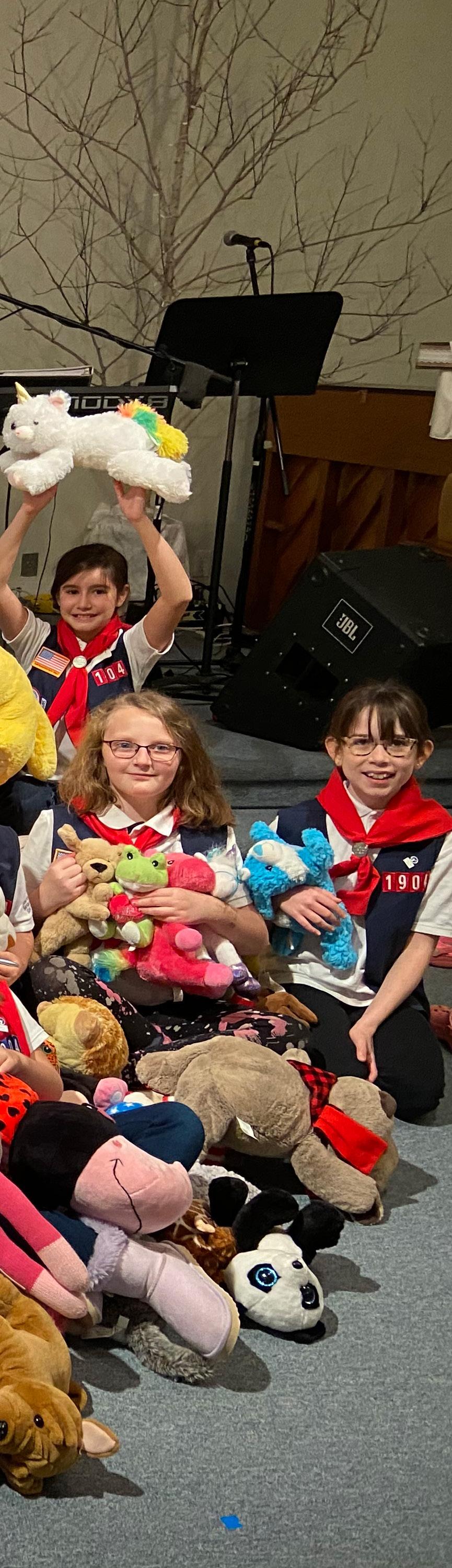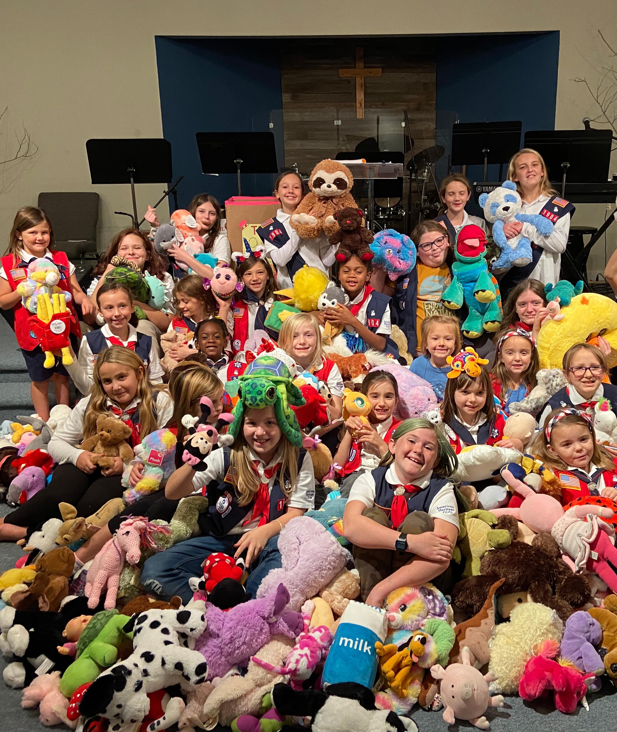 The Girl Members of VA1904 with the 740 stuffed animals they collected for kids in need. The Smithfield Troop donated the plush friends to BackPack Beginnings, a North Carolina-based non-profit that outfits children with “Comfort BackPacks”: age and gender-specific backpacks full of comfort items such as blankets, stuffed animals, books, toys, socks, hygiene products, school supplies given to abused/neglected, homeless, foster, and refugee children.