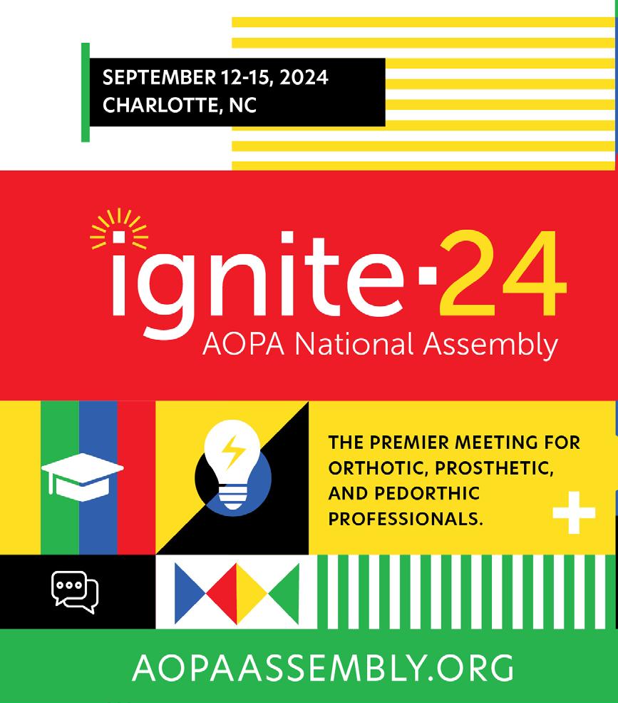AOPAnet.org With This Issue: 2024 AOPA National Assembly Preliminary Program. View at AOPAAssembly.org MAY 2024 The Magazine for the Orthotics & Prosthetics Profession
