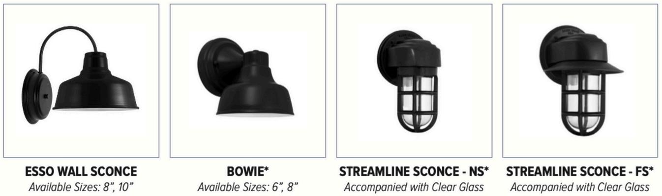 With dozens of customization options to choose from including finish color, mounting styles, LED options, and add-ons like wire cages and cast guard and glass, your wall sconce can be hand-crafted to complement most any décor or space. An American Stalls Project Manager can assist with customized options.