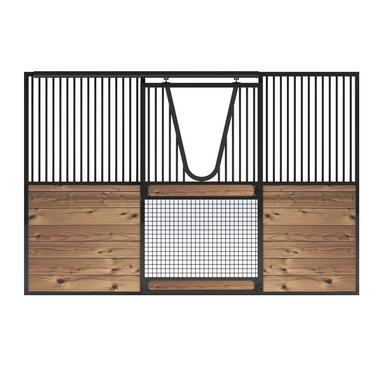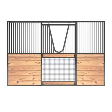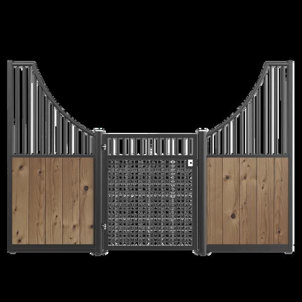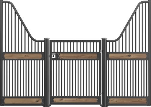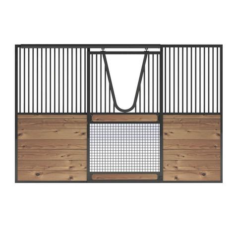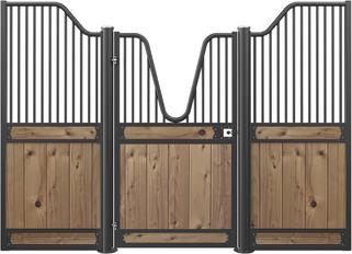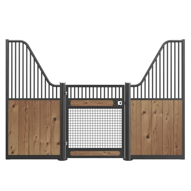 1E - Centered Sliding Stall Front Vertical Lumber In-Fill, V-Yoke, and HMH Design on Door (Center Name Plate, Mesh, and Shavings Guard on Door)