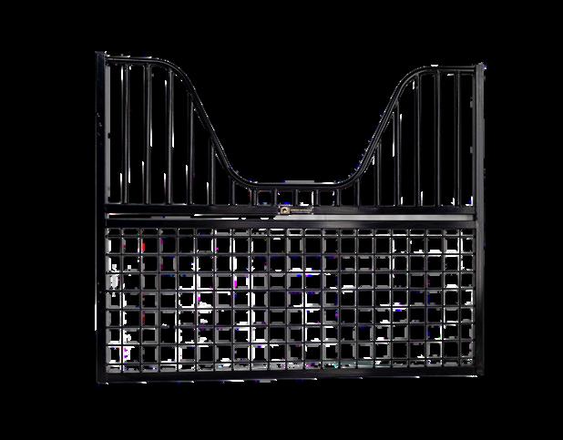1V - Off-Centered Sliding Stall Front V-Yoke and Complete HVH Design on Stall Front Bottom (Center Name Plate, Vertical Fill Bottom, and Shavings Guard)