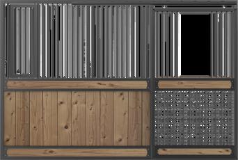 1R - Off-Centered Sliding Stall Front Vertical Lumber In-Fill and Welded Mesh on Stall Door Bottom