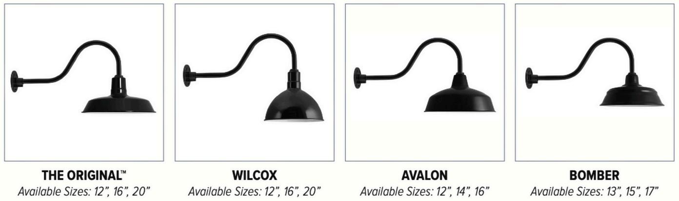 Our gooseneck fixtures and light shades are offered with various mounting options, sizes, and finishes. Shades vary in width, height, color, and finish to match or contrast with the gooseneck arm, depending on individual preferences. An American Stalls Project Manager can assist with customized options.
