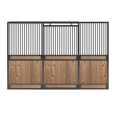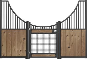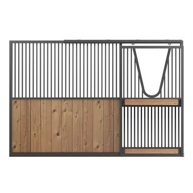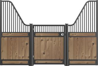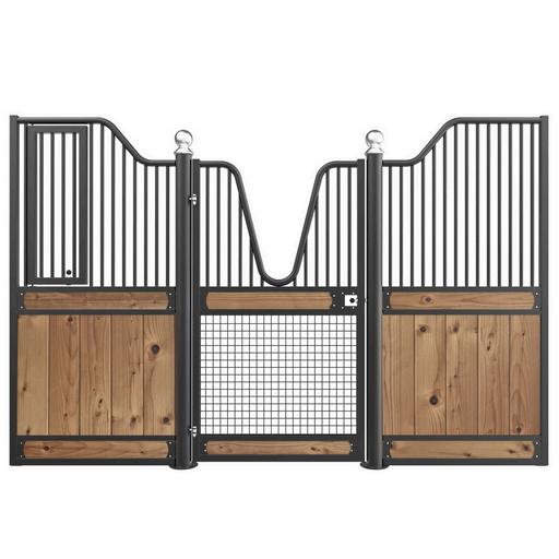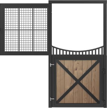 1E - Centered Sliding Stall Front Vertical Lumber In-Fill, V-Yoke, and HMH Design on Door (Center Name Plate, Mesh, and Shavings Guard on Door)