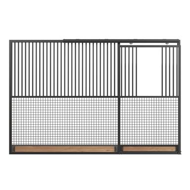 1W - Off-Centered Sliding Stall Front Rectangular Yoke HVH Design on Stall Front Bottom (Center Name Plate and Shavings Guard) with Mesh Door Bottom.