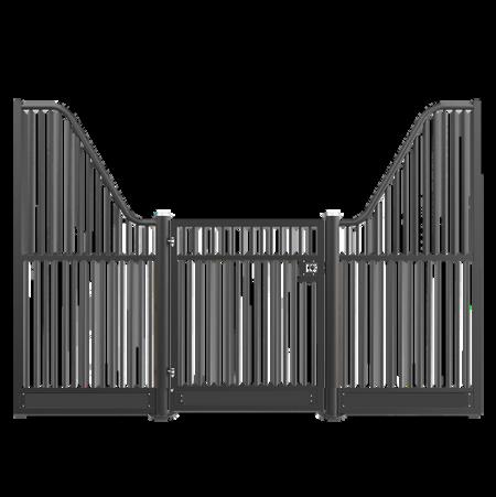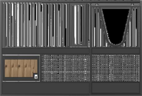 1V - Off-Centered Sliding Stall Front V-Yoke and Complete HVH Design on Stall Front Bottom (Center Name Plate, Vertical Fill Bottom, and Shavings Guard)