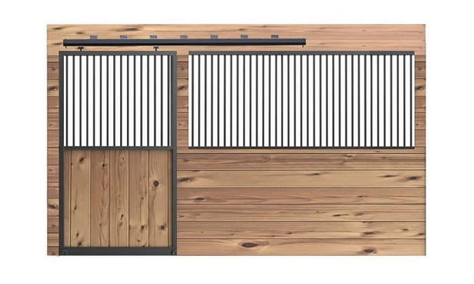 1R - Off-Centered Sliding Stall Front Vertical Lumber In-Fill and Welded Mesh on Stall Door Bottom