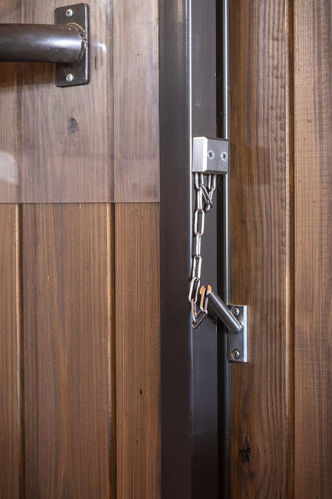 Pin Lock Latch System or Stop (Right) & Door Guide (Left)Many clients choose to only add stall doors – instead of fully welded stall fronts. At American Stalls, we understand that each barn is unique. Stall doors are always a very personal choice since they are used dozens of times each day. That is why every single stall door is custom built to order.