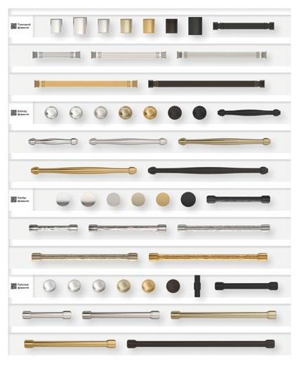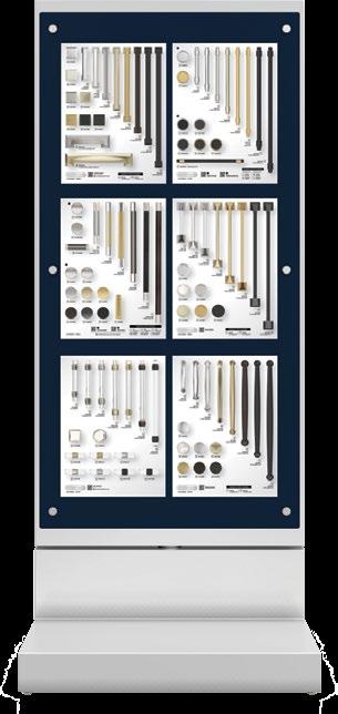 Each 12-row interactive panel holds up to 4 hardware kits (p. 17-19), showcasing 4-8 collections based on your selections.