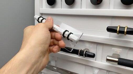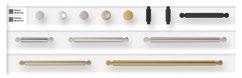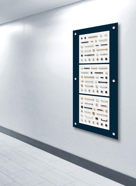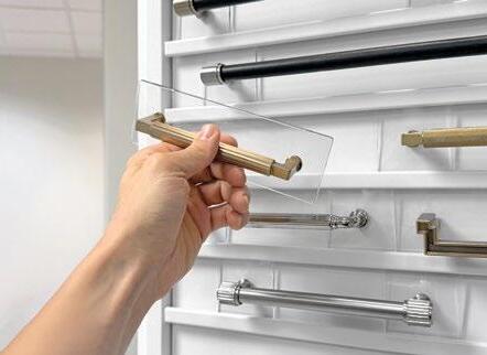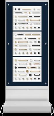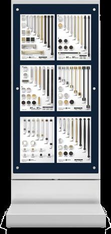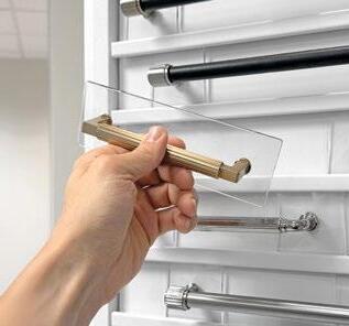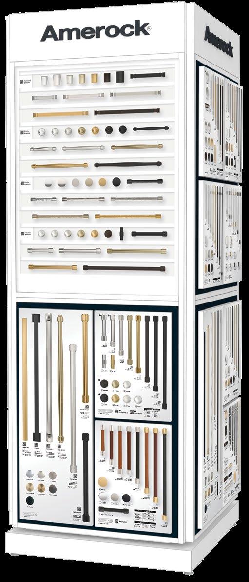 Showcases cabinet hardware, bath accessories, or decorative hooks affixed to boards Houses removable cabinet hardware and is now compatible with our latest wall and tower displays. INTERACTIVE