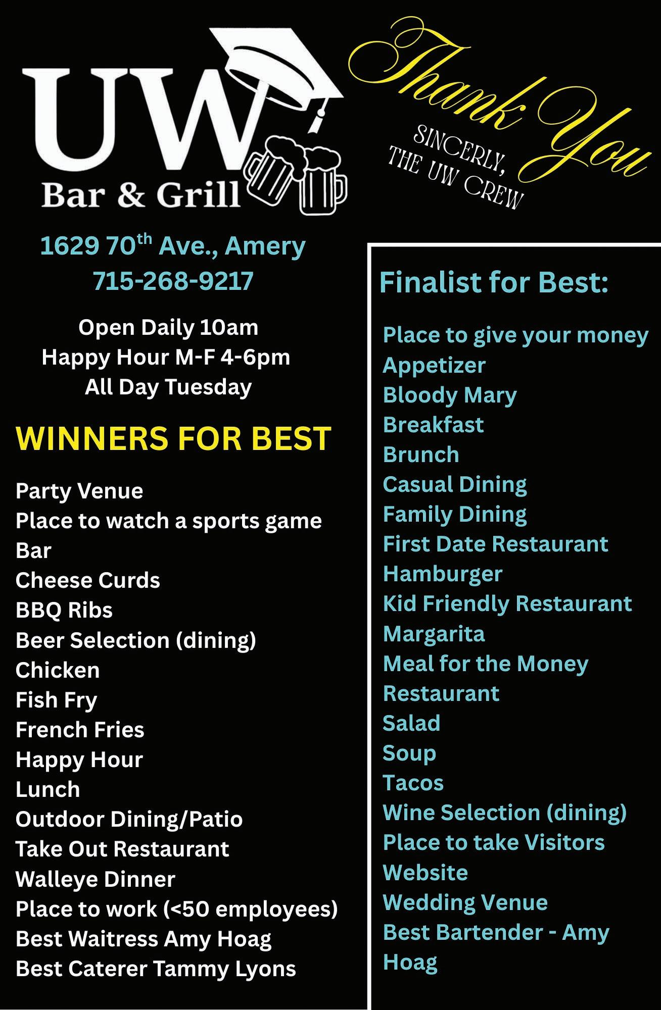 Featuring the Best of the Best in the Amery area. Congratulations to all our winners and finalists!