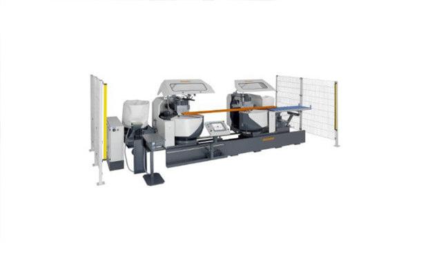 • Tronzadora de doble cabezal con 5 ejes controlados para aluminio, PVC y aleaciones ligeras