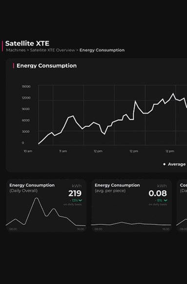 voilàp connect es una plataforma IoT (Internet of Things, Internet de las Cosas) basada en la nube que permite monitorizar las máquinas, su consumo energético y neumático, así como el estado de la producción en tiempo real y desde cualquier lugar. Su panel de control proporciona acceso al historial de datos de la máquina, facilitando el análisis de la productividad, el cumplimiento, las alarmas y los tiempos de inactividad. Esto permite medir y mejorar rápidamente la capacidad de producción, reducir el consumo y los desperdicios, así como prever las necesidades de mantenimiento.
