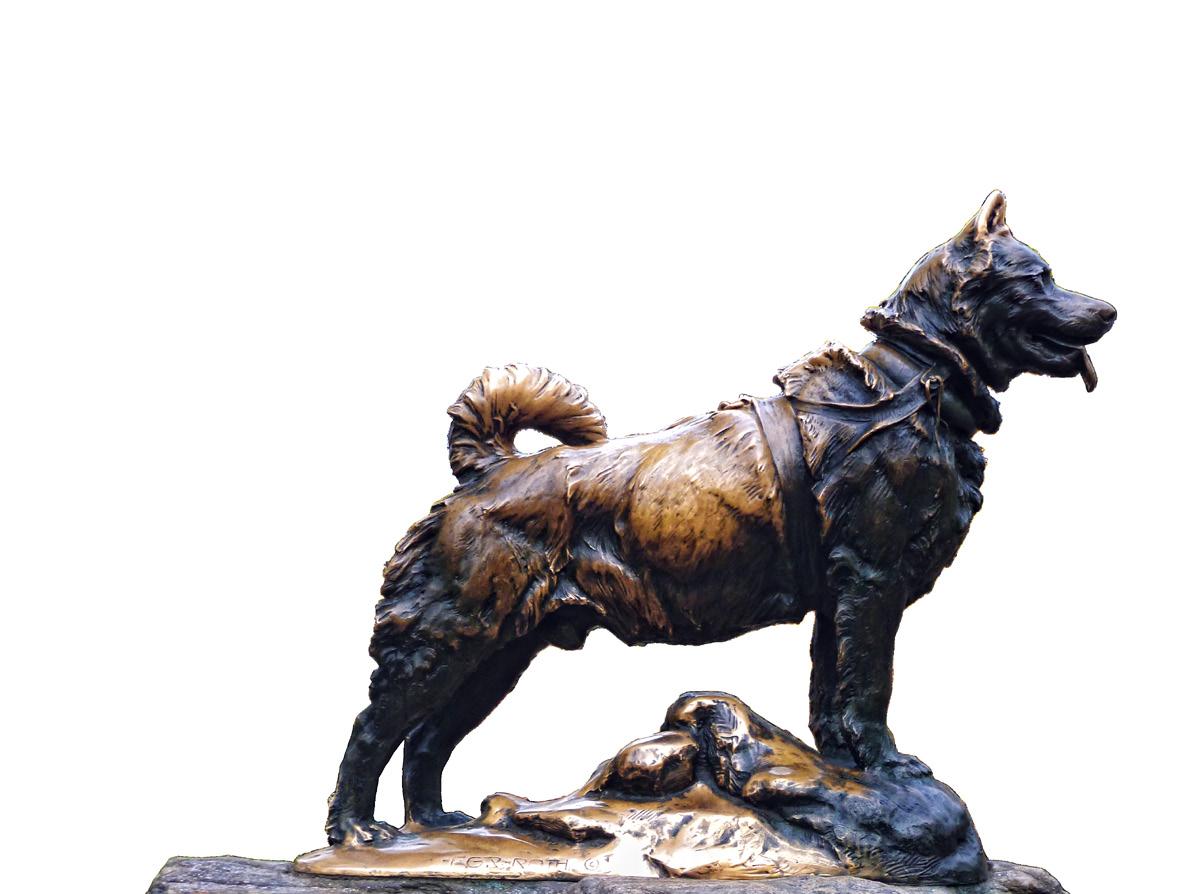 mente en Central Park existe una estatua en bronce dedicada a los perros de tiro de esta aventura. La placa dice lo siguiente: “Dedica ted to the indomitable spirit of the sled dogs… Endurance / Fidelity / Intelligence”