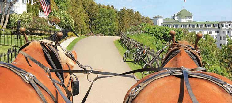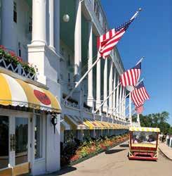 Mackinac Island’s Mission Point Resort and the iconic Grand Hotel both o er full-service amenities as well as special touches such as a great lawn full of relaxing Adirondack chairs and the world’s longest porch.