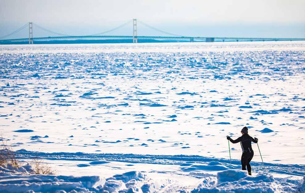 • There are a handful of places to stay on Mackinac Island in the winter. Above Mackinac Condos, Bicycle Street Inn, Pontiac Lodge and Village Inn Suites are open year-round, while Lilac Tree Hotel, Mackinac House and Small Point B&B have limited winter weekend or holiday dates. Visit www. mackinacisland.org/2021-2022mackinac-island-winter-season/ for details.