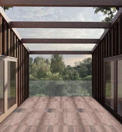 Enfin, une longue coursive couverte longeant la partie Est du bâtiment sera construite. Elle a pour objectif de relier les deux bâtiments abritant l’école (la chartreuse et l’annexe). Elle permettra aussi de desservir un nouveau préau. Ce nouveau couvert sera représenté par une lame métallique qui viendra surplomber le mur de l’ancienne serre. Il a pour vocation d’être destiné au confort d’été. En effet, étant situé au nord, cet espace ombragé pourra être utilisé pour manger ou travailler en extérieur, confortablement.