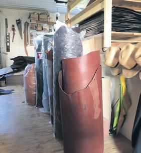 A charming abode, humble farm, and a rustic, A-framed shop makeup Ike’s twoacre property, which is surrounded by miles of serene countryside. Stepping through the single door into the shop, battery operated lights and propane fueled lamps dot the ceiling. Simple wooden shelves full of neat leather goods boast something for everyone. Bright, richly toned crossbody bags, handbags, wristlets, and elegant belts for the ladies; wallets, customized leather-wrapped mugs, and Ike’s infamous belts for the men; watch bands, leather-covered padfolios,