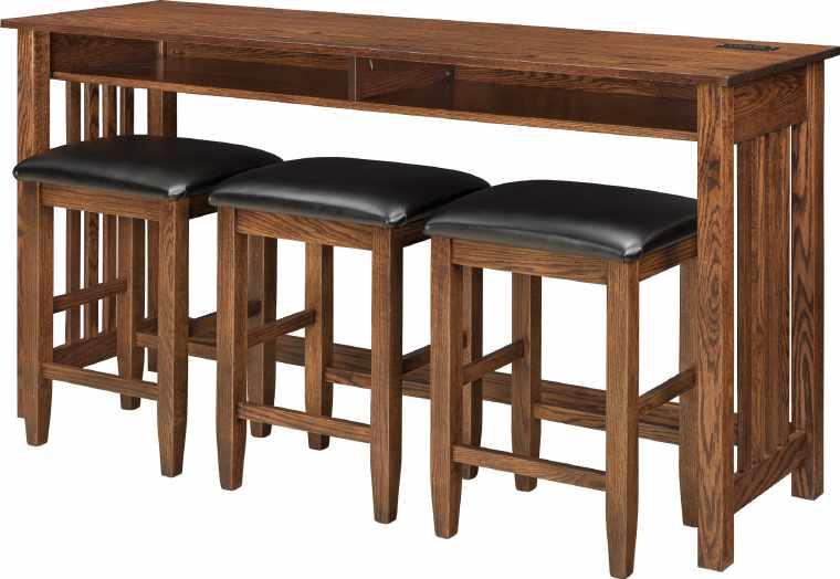 Country Mission Counter Height Sofa Table Item #: LA-CM-2072-CHS Counter height with storage space underneath. Includes power outlet (PB2-2U) with 2 AC outlets and 2 USB ports. Bar stools available, priced separately. • 20"d x 72"w x 36"h • Wood: Oak with Golden Brown stain