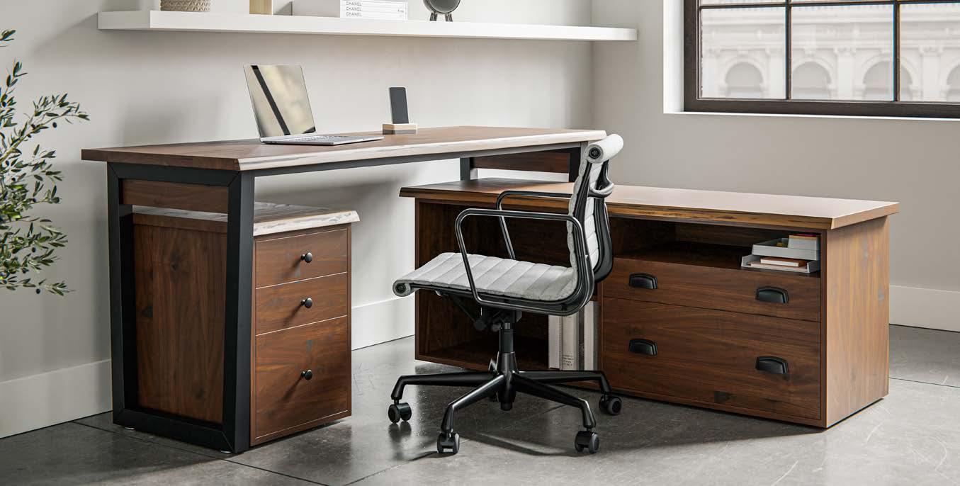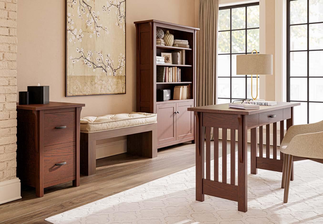 We also encourage our customers to be creative by participating in the design process for the office furniture they select. Combining dark and light woods, choosing from a wide variety of finishes and adding hardware of choice make each piece the owner’s masterpiece. Whether for a corporate environment or home office, the furniture occupying it is customized to your design style and shows your good taste.