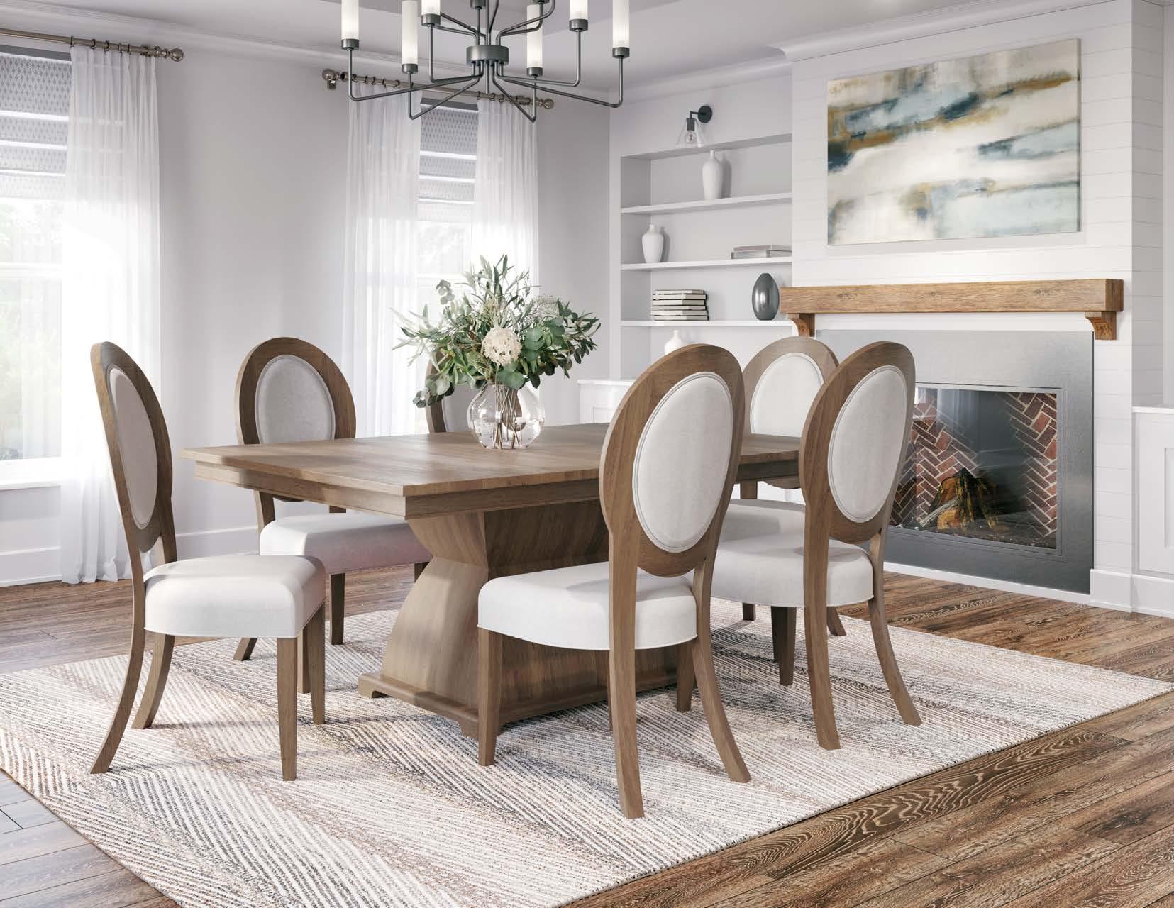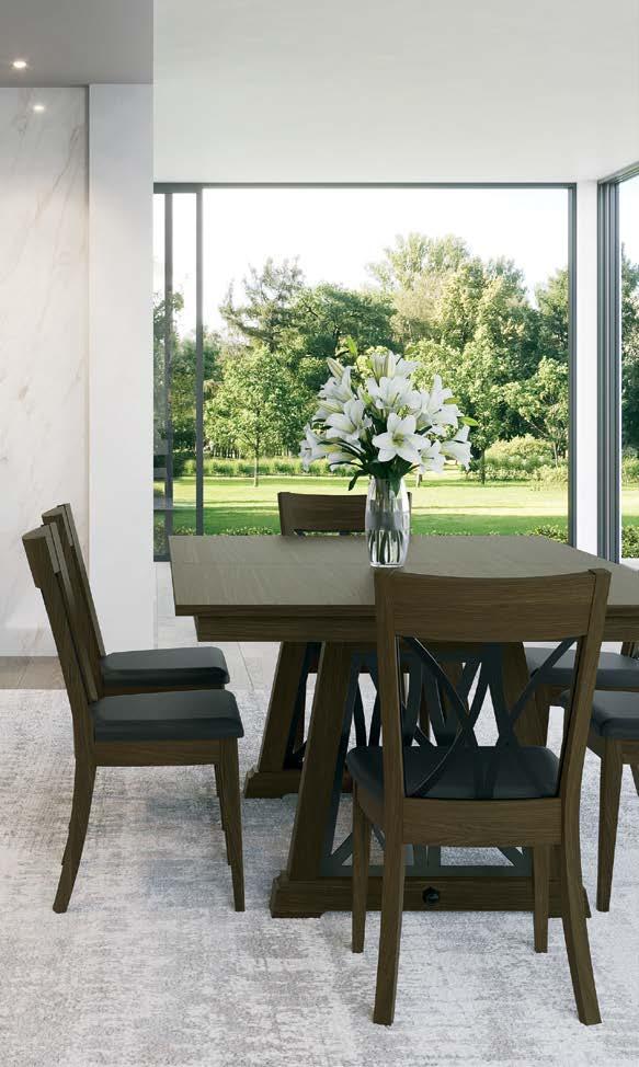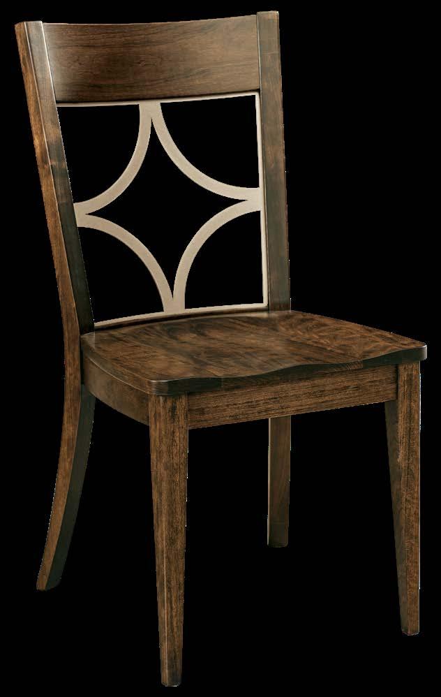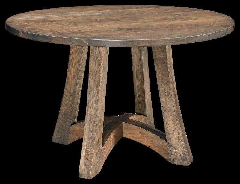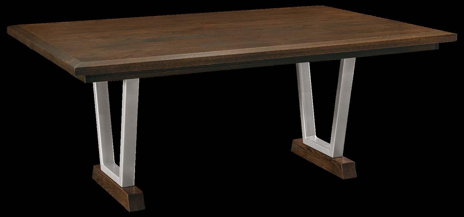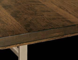 139RH Yoder, LLC NORTH STAR Sizes: 42" x 72" and 48" x 72" with up to Four 12" Leaves Available in Oak, Cherry, Hard Maple, Brown Maple, Quarter-Sawn White Oak, Hickory, Walnut, Rustic Cherry and Rustic Hickory Shown in Quarter-Sawn White Oak with Dark Knight Stain and Tex Black Metal Metal Color Options Tex Black Gold Silver