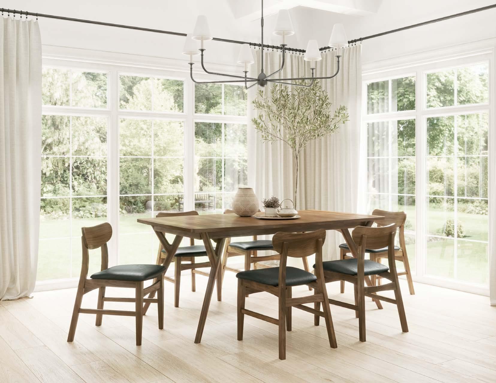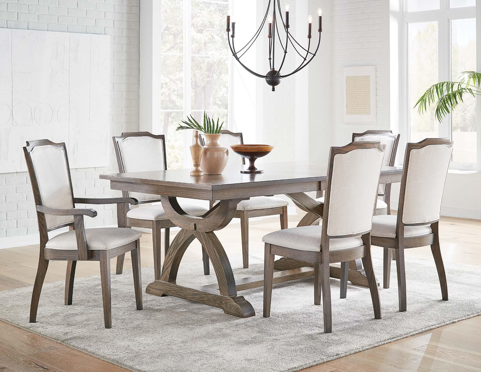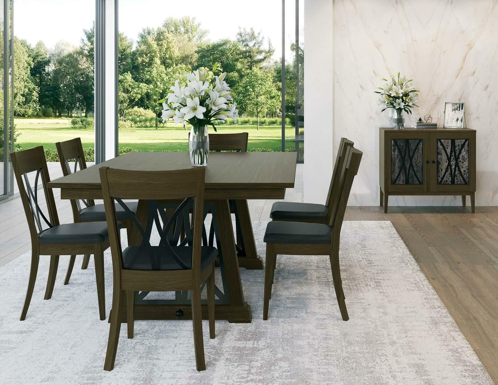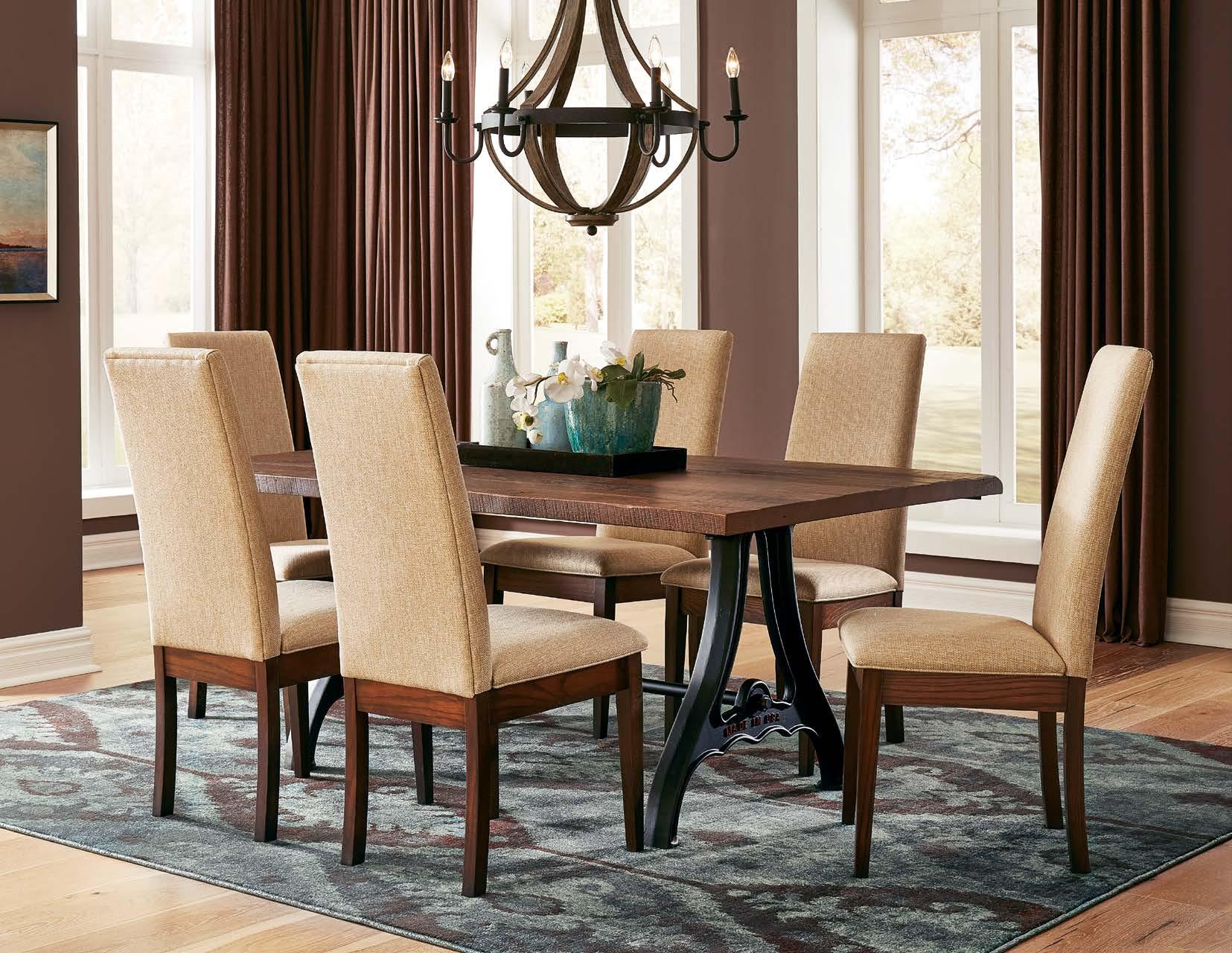 139RH Yoder, LLC NORTH STAR Sizes: 42" x 72" and 48" x 72" with up to Four 12" Leaves Available in Oak, Cherry, Hard Maple, Brown Maple, Quarter-Sawn White Oak, Hickory, Walnut, Rustic Cherry and Rustic Hickory Shown in Quarter-Sawn White Oak with Dark Knight Stain and Tex Black Metal Metal Color Options Tex Black Gold Silver