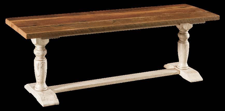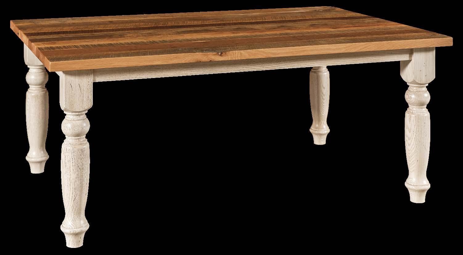42" x 60", 42" x 66", 42" x 72", 48" x 60", 48" x 66" and 48" x 72" with Solid Top Only Available in Oak, Cherry, Hard Maple, Brown Maple, Quarter-Sawn White Oak, Hickory, Walnut, Rustic Cherry and Rustic Hickory Also Available with 1" Smooth Top Shown in Oak with True Reclaimed Barn Wood Top. Top Shown in Natural Finish and Base Shown in White Paint with Warm Brown Glaze, Distressed