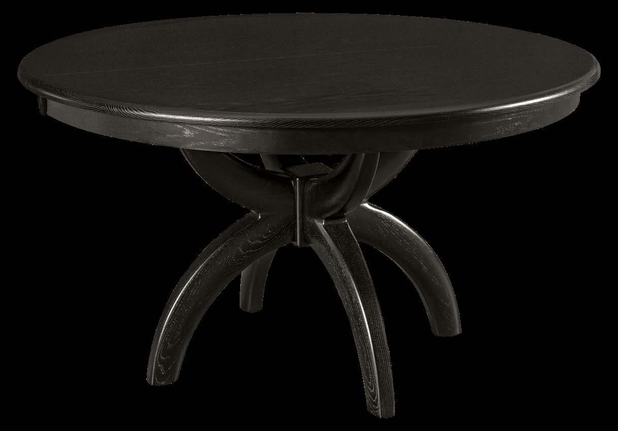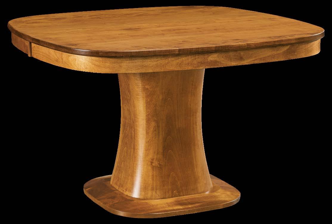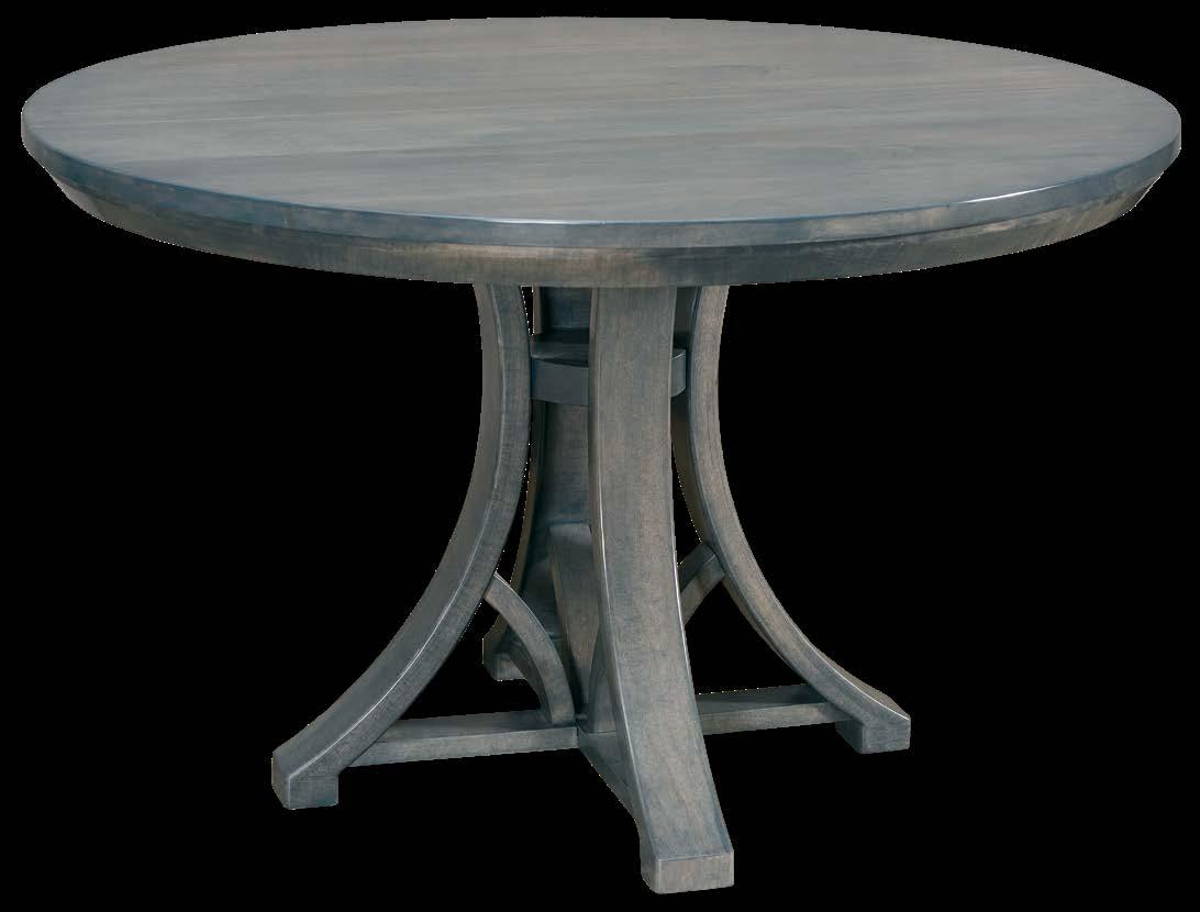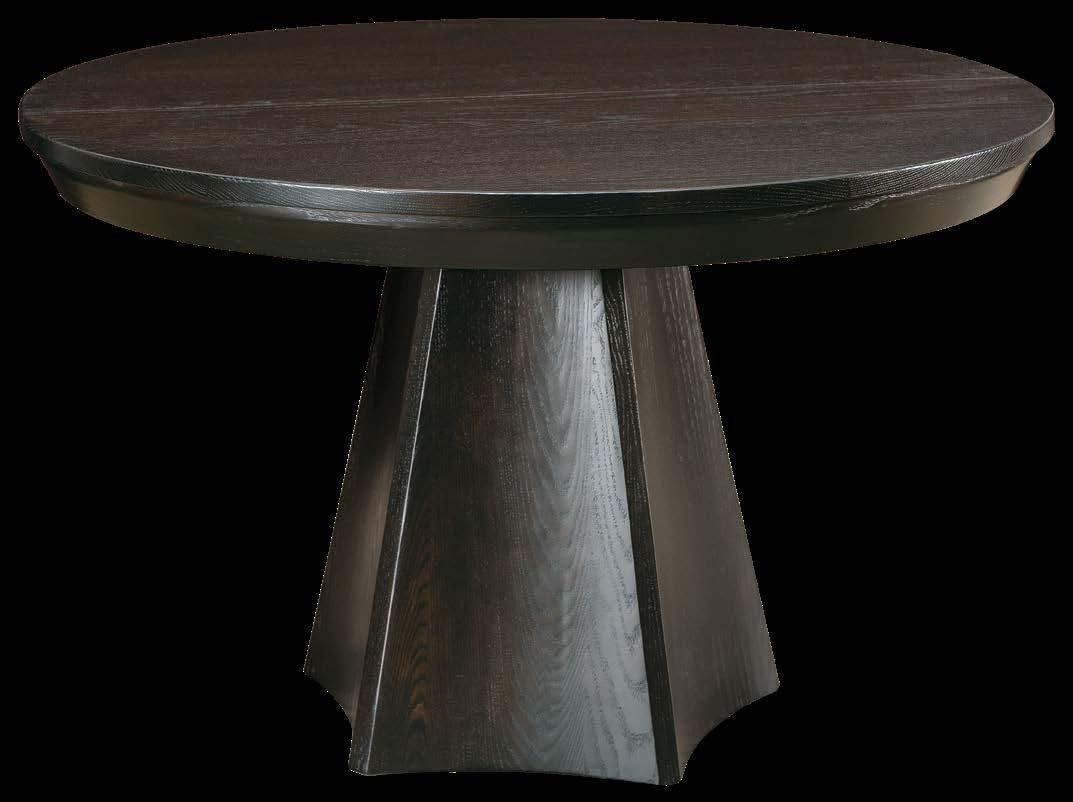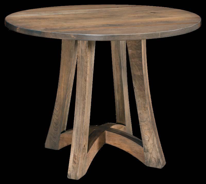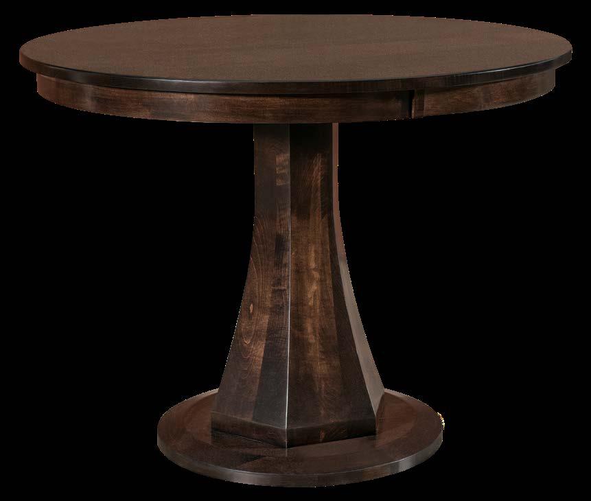 Sizes: 42" and 48" Diameter with up to Two Leaves or 54" Round with One Leaf Base Size: 34" x 34" Available in Oak, Cherry, Hard Maple, Brown Maple, Quarter-Sawn White Oak, Hickory, Walnut, Rustic Cherry and Rustic Hickory 1/2" Roundover Edge is Standard Shown in Oak with Ebony Stain