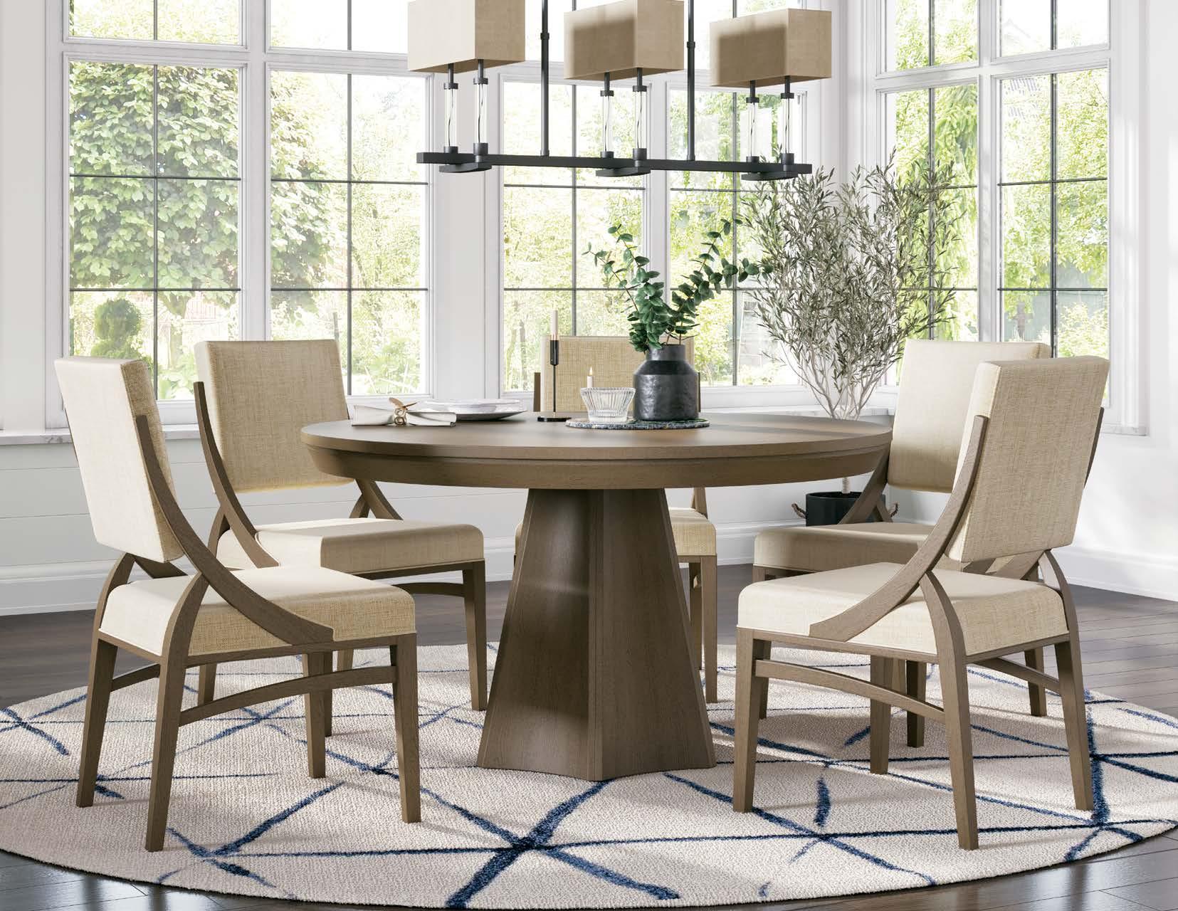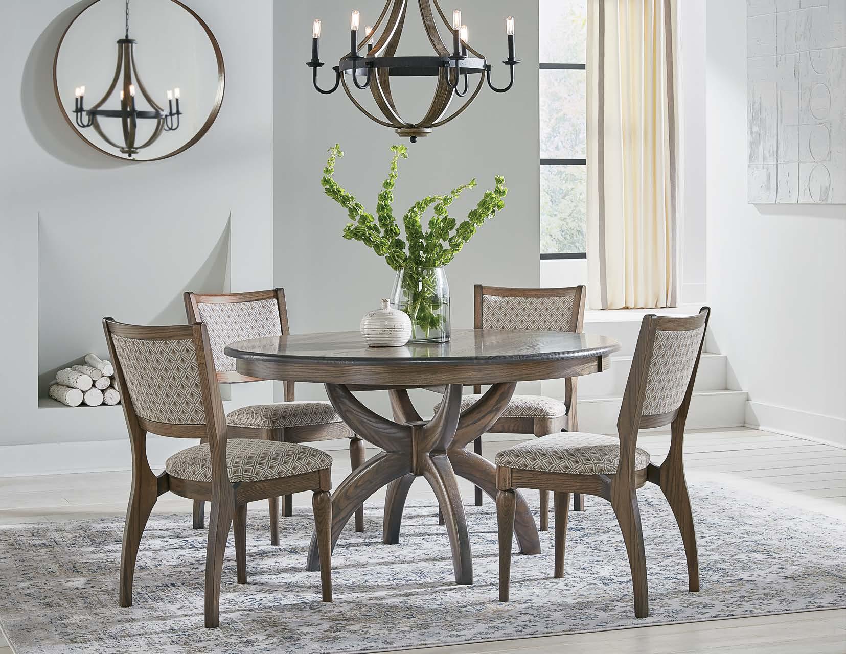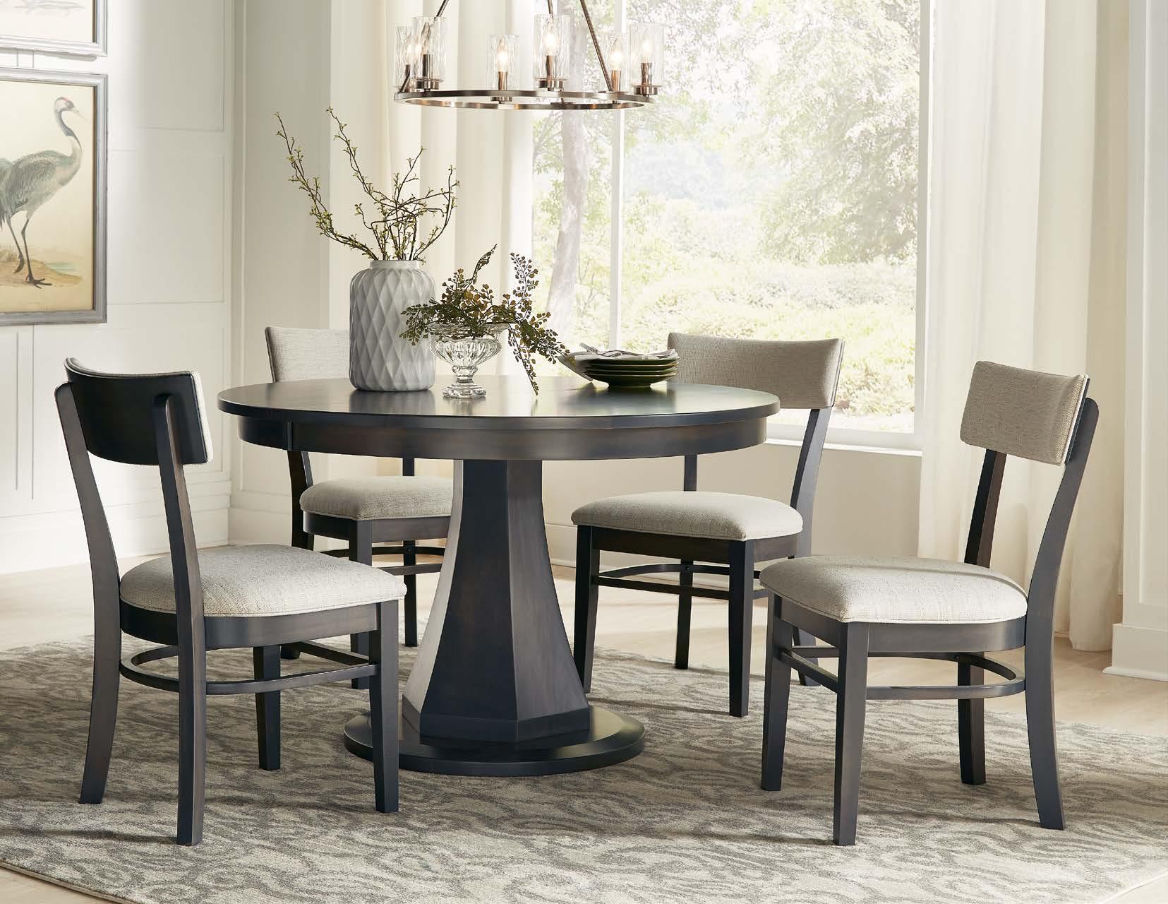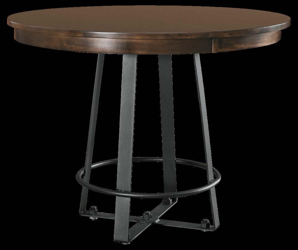 Sizes: 42" and 48" Diameter with up to Two Leaves or 54" Round with One Leaf Base Size: 34" x 34" Available in Oak, Cherry, Hard Maple, Brown Maple, Quarter-Sawn White Oak, Hickory, Walnut, Rustic Cherry and Rustic Hickory 1/2" Roundover Edge is Standard Shown in Oak with Ebony Stain