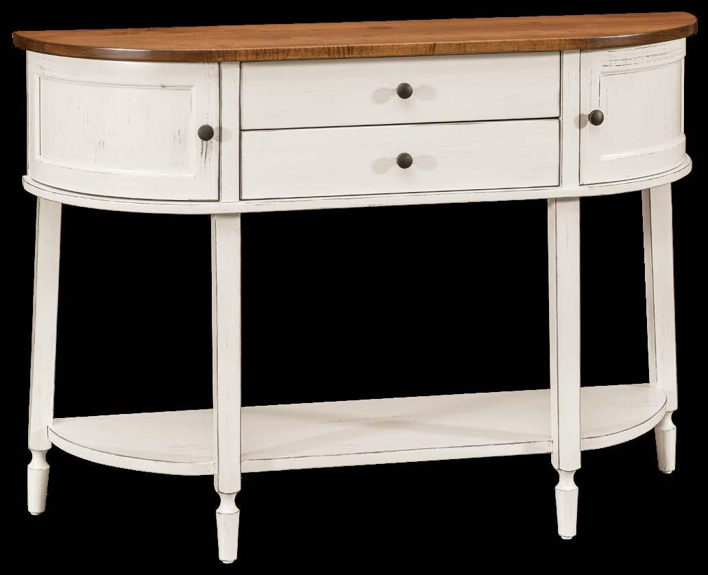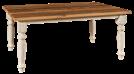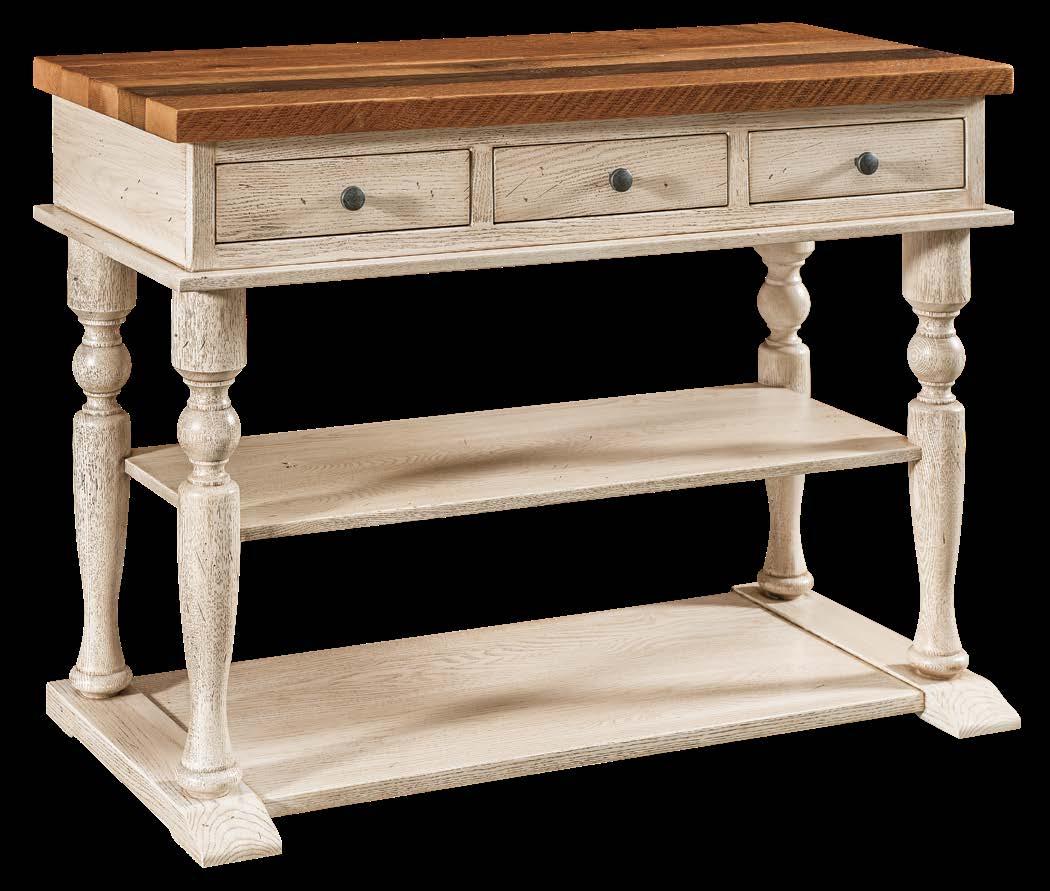 Shown in Oak with True Reclaimed Barn Wood Top. Top Shown in Natural Finish and Base Shown in White Paint with Warm Brown Glaze, Distressed
