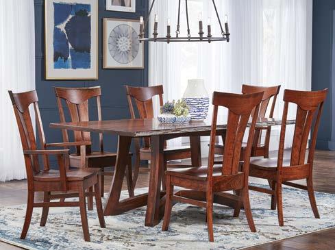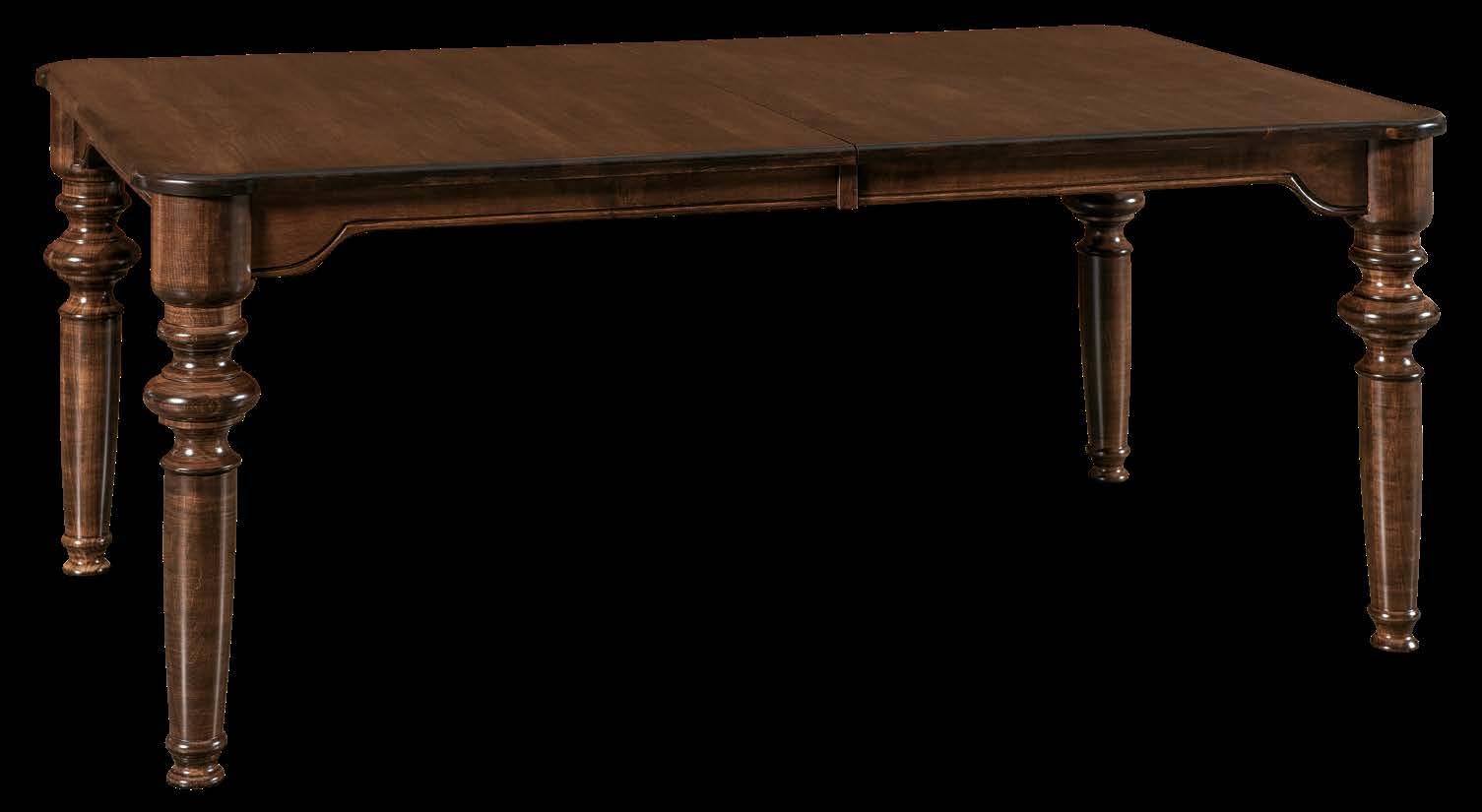 150 WILTON Sizes: 42" x 60", 42" x 66", 42" x 72", 48" x 60", 48" x 66" and 48" x 72" with up to Four 12" Leaves Available in Oak, Cherry, Hard Maple, Brown Maple, Quarter-Sawn White Oak, Hickory, Walnut, Rustic Cherry and Rustic Hickory 1" Thick Top, Shape Shown and Mission Edge are Standard Shown in Brown Maple with Old Museum Stain Top Shape