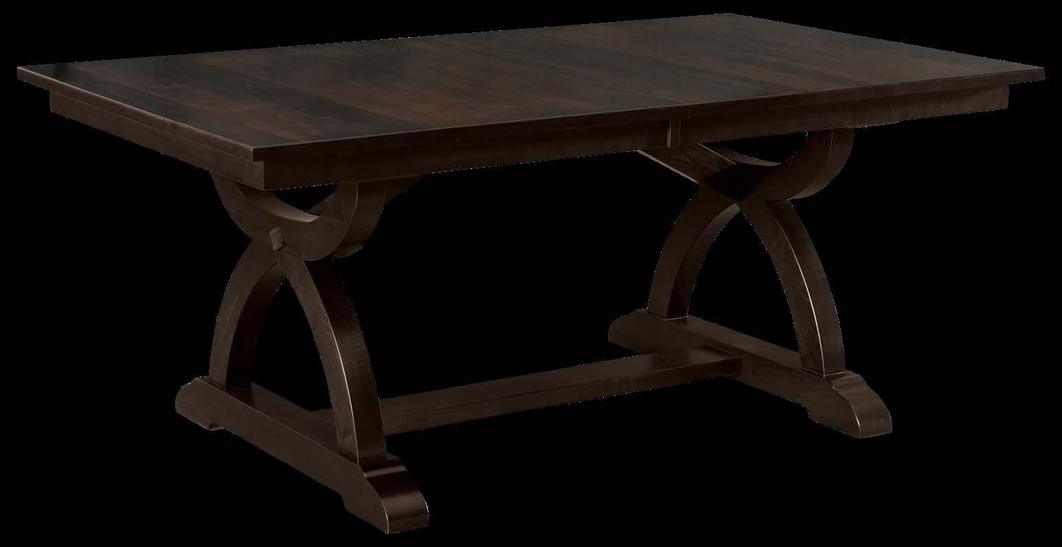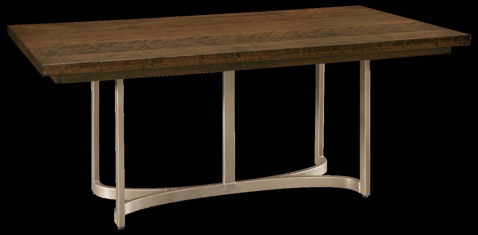 REGAL Sizes: 42" x 72" and 48" x 72" with up to Four 12" Leaves Base Size: 21" x 45" Self Store Available: 42" and 48" Width Stores Four Leaves without Skirts Available in Oak, Cherry, Hard Maple, Brown Maple, Quarter-Sawn White Oak, Hickory, Walnut, Rustic Cherry and Rustic Hickory 1" Thick Top and Mission Edge are Standard Shown in Cherry with Earthtone Stain and Gold Metal Base Metal Color Options Tex Black Gold Silver