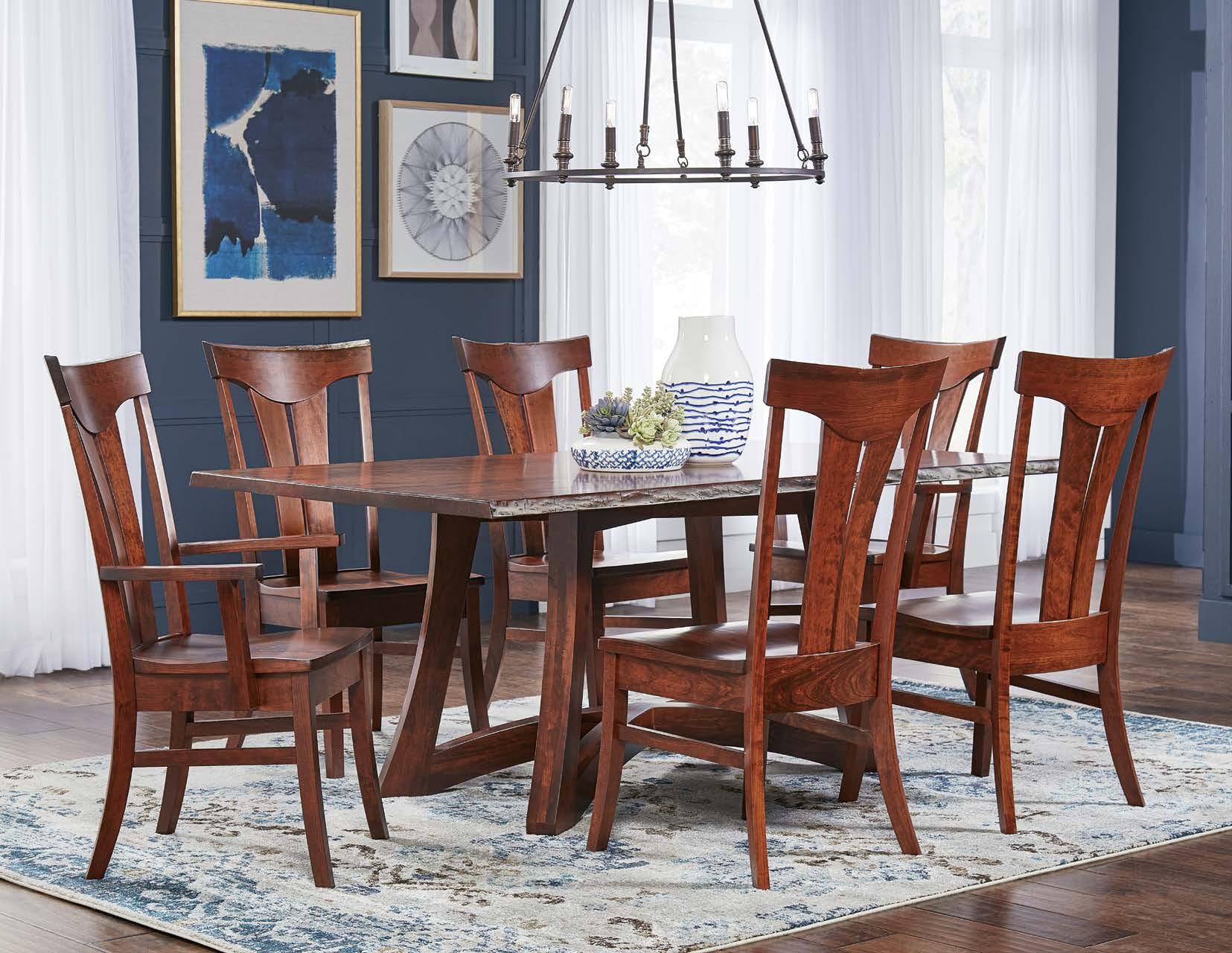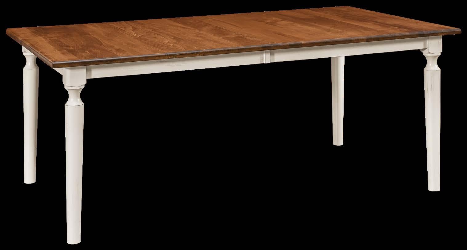 147 Shown in Cherry with Chestnut Stain VINSON Sizes: 42" x 60", 42" x 66", 42" x 72", 48" x 60", 48" x 66" and 48" x 72" with up to Four 12" Leaves Available in Oak, Cherry, Hard Maple, Brown Maple, Quarter-Sawn White Oak, Hickory, Walnut, Rustic Cherry and Rustic Hickory 1" Thick Top and Mission Edge are StandardTop Shape