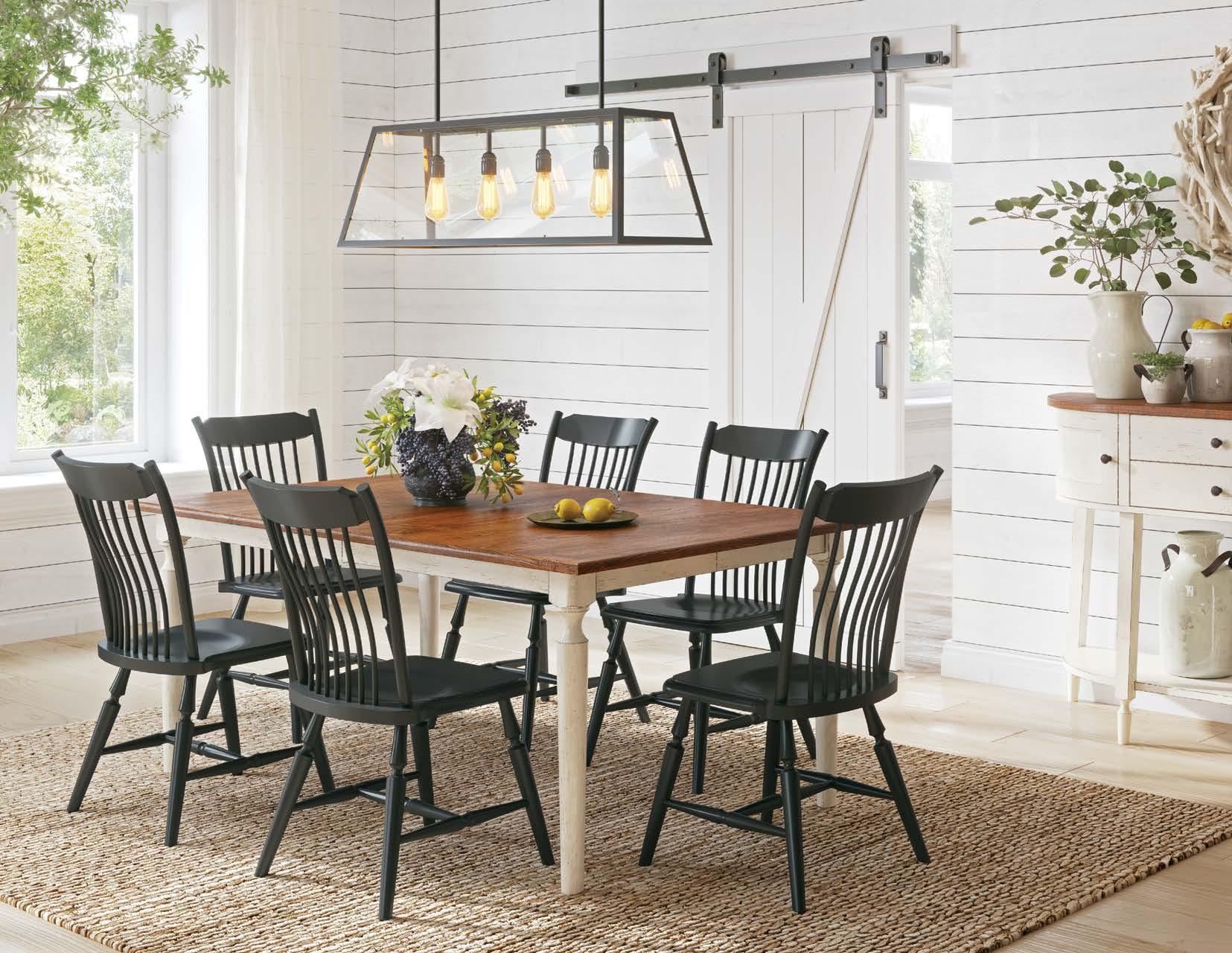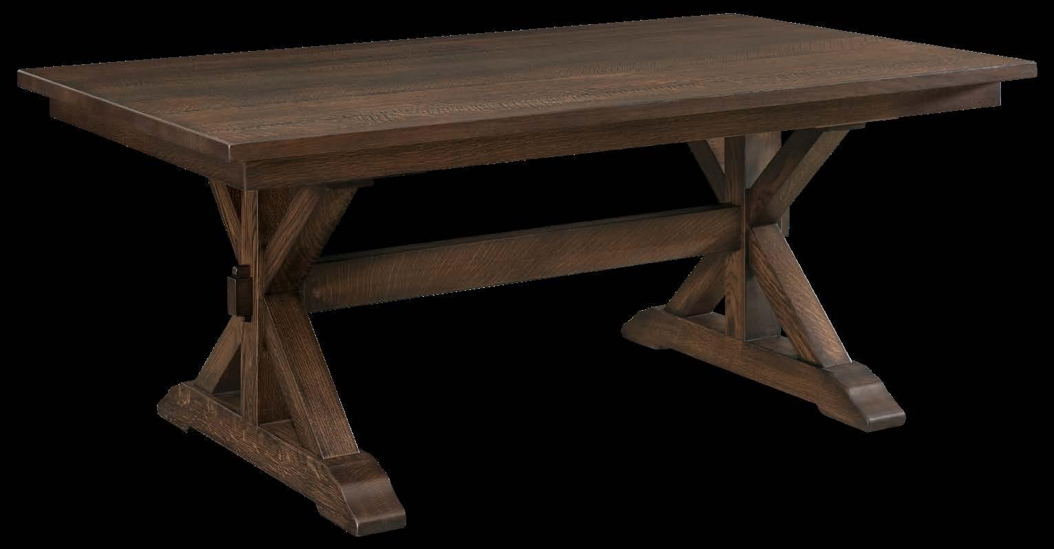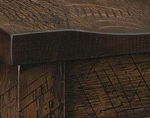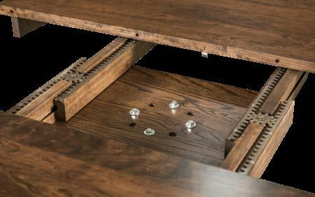 SAWYER Sizes: 42" x 72" and 48" x 72" with up to Four 12" Leaves Self Store Available: 42" Width Stores Two Leaves with Skirts, 48" Width Stores Two Leaves without Skirts Available in Oak, Cherry, Hard Maple, Brown Maple, Quarter-Sawn White Oak, Hickory, Walnut, Rustic Cherry and Rustic Hickory 1 1/2" Top with Vintage Circular-Sawn and Mission Edge are Standard, Also Available with Smooth Top Shown in Quarter-Sawn White Oak with Lite Asbury Stain and Black Tincture Finish VINTAGE CIRCULAR-SAWN