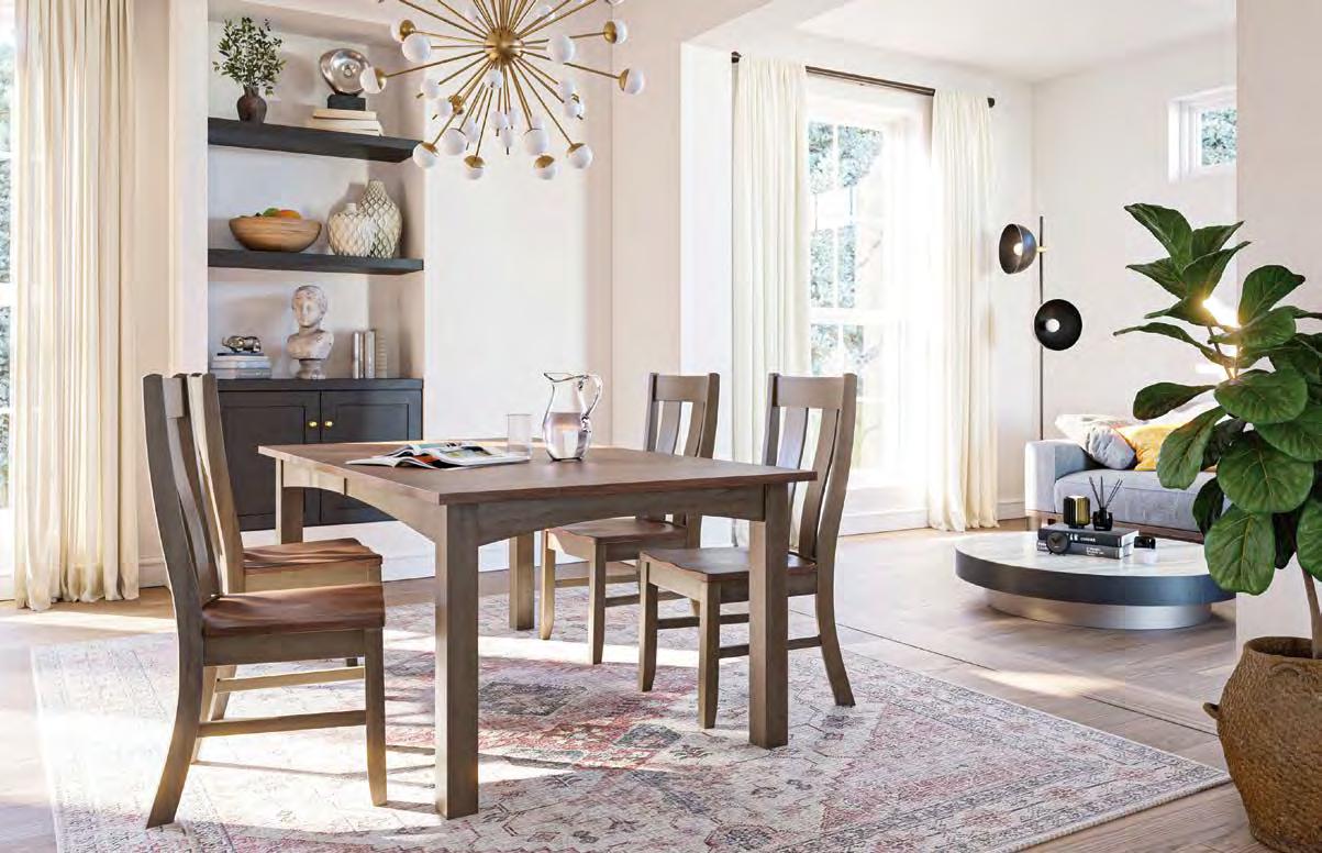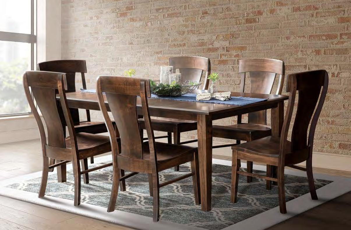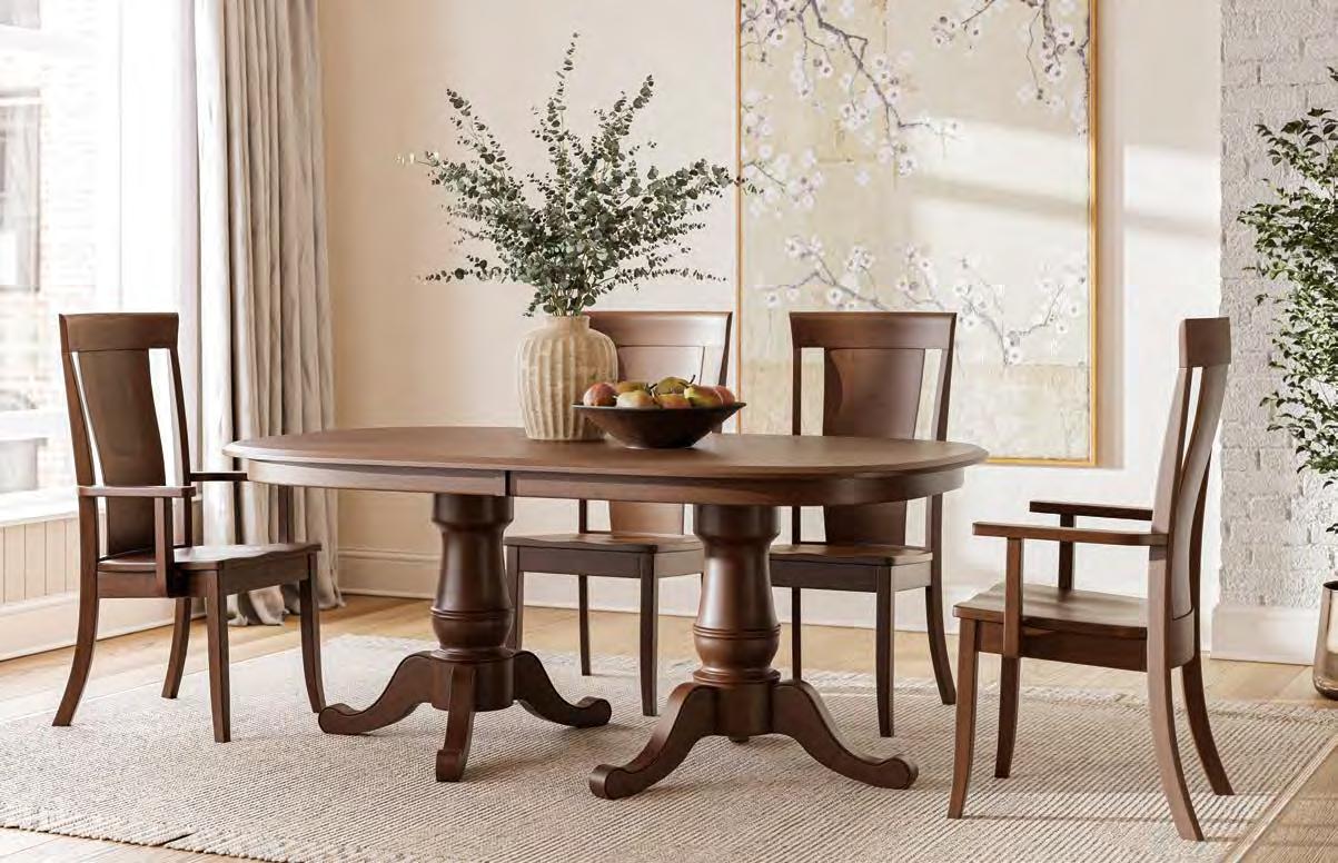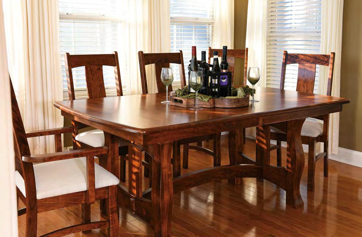 RENO TRESTLE shown in Cherry with Michael’s Cherry stain. Shown with Reno Chairs from Artisan Chairs.