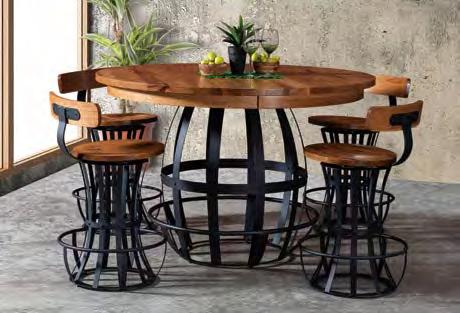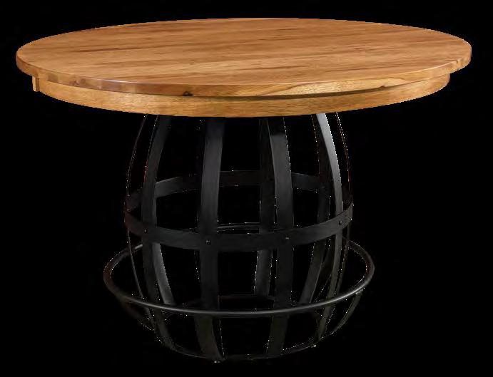 WABASH BARREL shown in Rustic Hickory with FC-44688 Medium Walnut stain. Shown with Artisan Wabash Chairs.