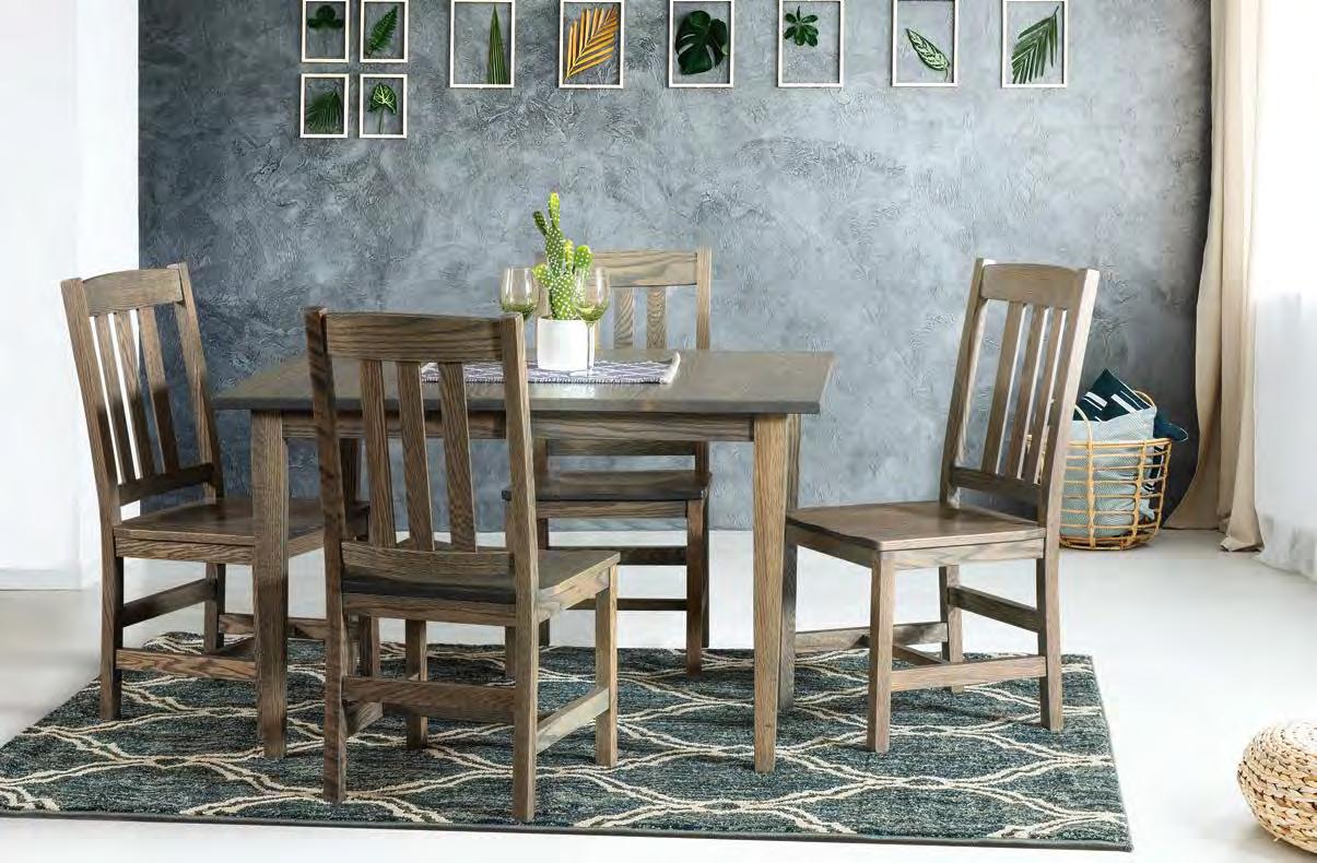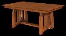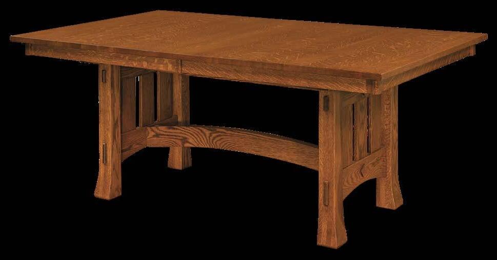 SHERIDAN TRESTLE shown in Red Oak with D22N08963 Sandstone stain. Shown with FN Abe Chairs.