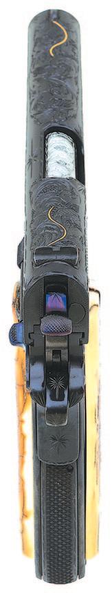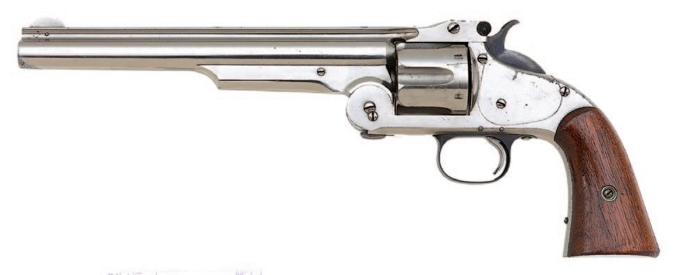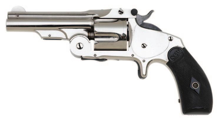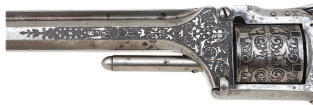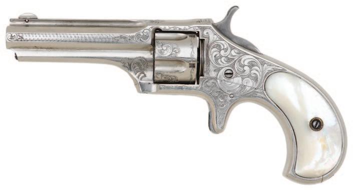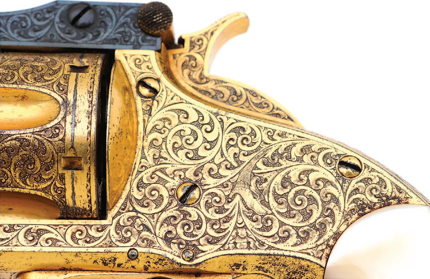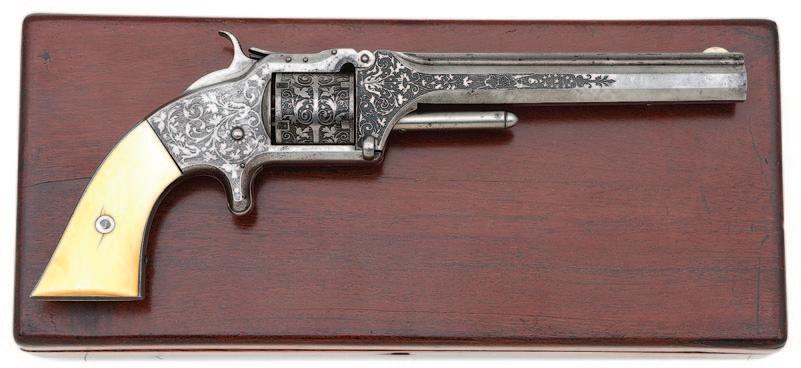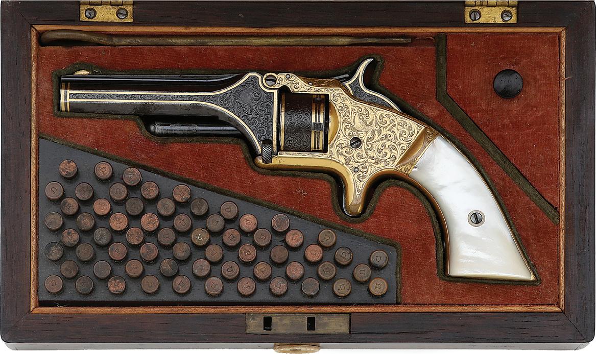 STUNNING EXHIBITION QUALITY SMITH & WESSON NO. 1 THIRD ISSUE REVOLVER, ENGRAVED AND GOLD INLAID BY GUSTAVE YOUNG, MADE FOR PRESENTATION TO CHRISTINA NILSSON AND DELIVERED TO D.B. WESSON IN 1870. D.B. WESSON GIFTED THIS REVOLVER TO NILSSON, A FAMOUS SWEDISH OPERA SINGER WHO FIRST TOURED THE UNITED STATES IN 1870.