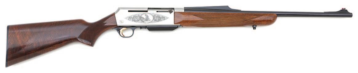 serial #151702, 303 Savage, 20" round barrel with a bright excellent bore. The barrel of this beautiful little carbine retains about 98% strong original blue finish. The action shows 97% brilliant original blue finish with only loss due to the halo from the saddle ring making contact with the action. The lever shows 95% original color case hardened finish while the steel carbine buttplate shows about 85% original blue with loss only on the contact points of the heel and toe. The walnut stocks rate excellent showing 98% original finish with just a few scattered light handling marks and one more notable scratch down the right side from the cheek onto the wrist. The carbine is equipped with its original beaded blade front and sporting rear sights. The gun comes with a 1994 dated factory letter from Roe Clark confirming the configuration and showing shipment on March 14, 1914 to Sim mons Hardware in St. Louis. A sweetheart of an 1899 carbine for the Savage collector. (1C1187433) {C&R} [Alan J. Gaines Collection] (3000/5000)
