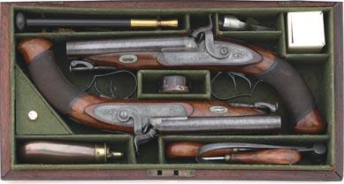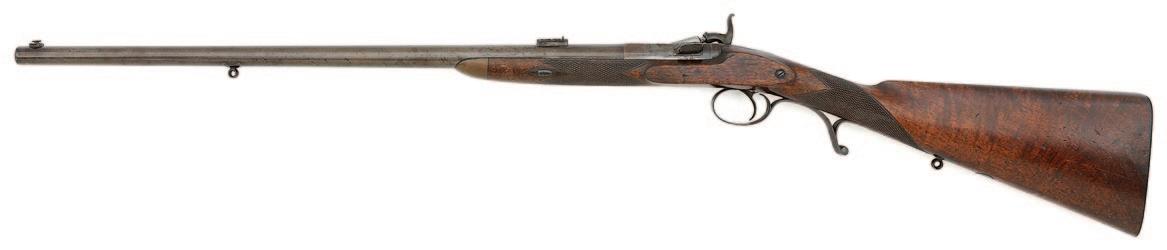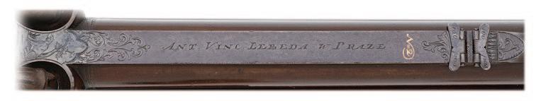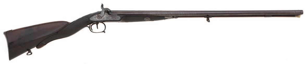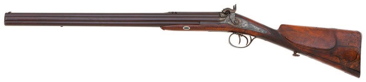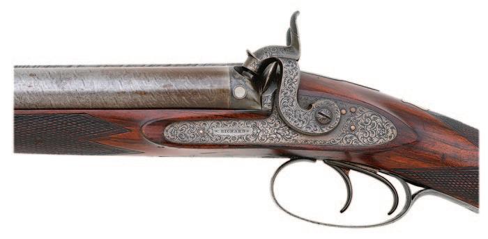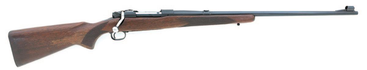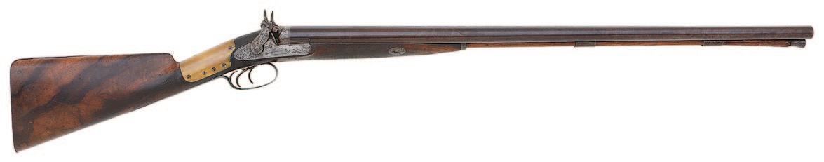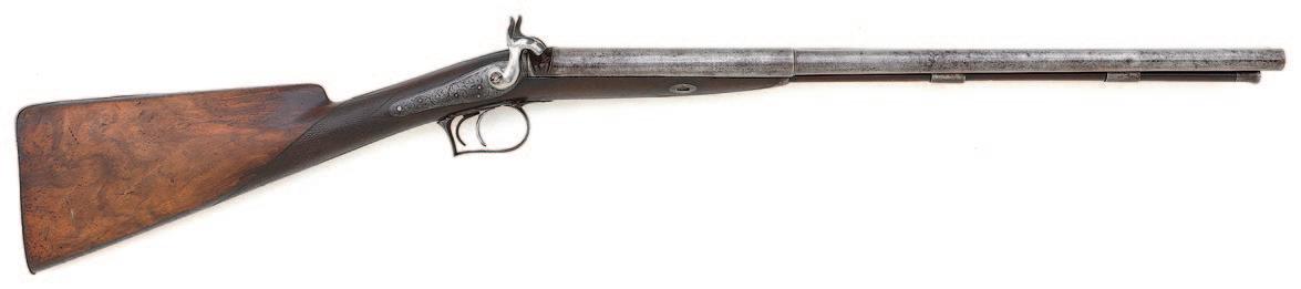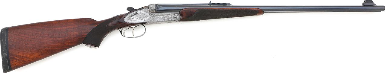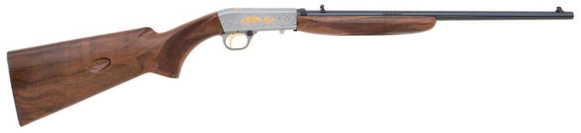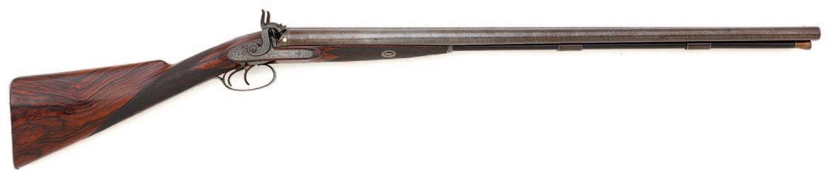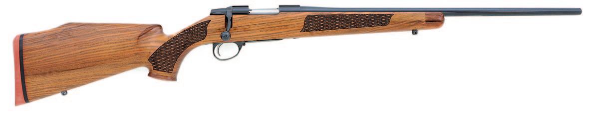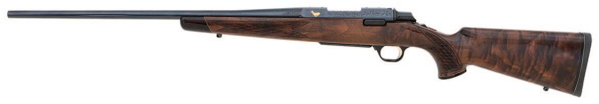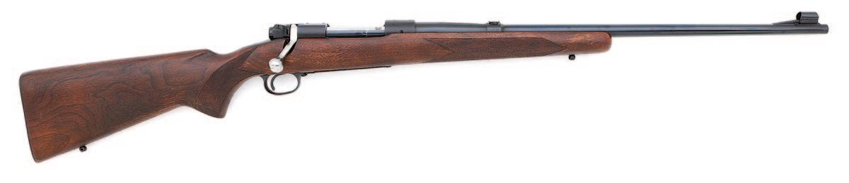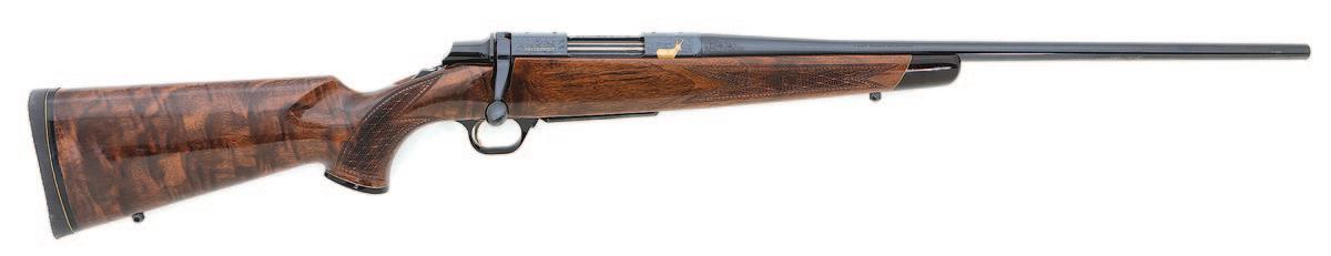 engraving, a floral motif on the hinge pin, and games scenes of grouse left and quail right; the trigger retains all of its gold finish. The capped pistolgrip deluxe walnut stock and forend are in excellent condition with perhaps a light handling mark or two, and feature a 14 1/2” length of pull to the factory grooved black plastic buttplate and lovely grain figure throughout. The shotgun locks up tight and on-face via Greener-style crossbolt with the lever coming to rest just right of center and features a single selective inertial trigger, nonautomatic safety, ejectors, and is sighted with a lone brass bead. Included is the factory box, end labeled and numbered to the gun, and two screw-chokes marked modified and improved cylinder. An attractive smallbore shotgun. (14B12028-2) {MODERN} (1000/1500)