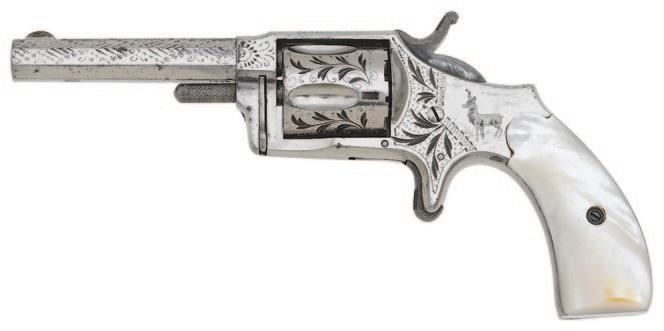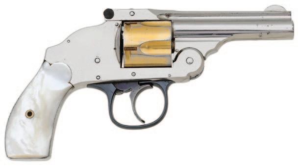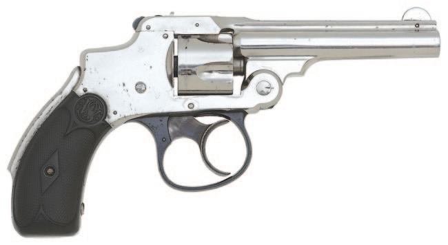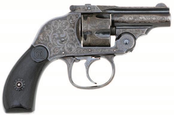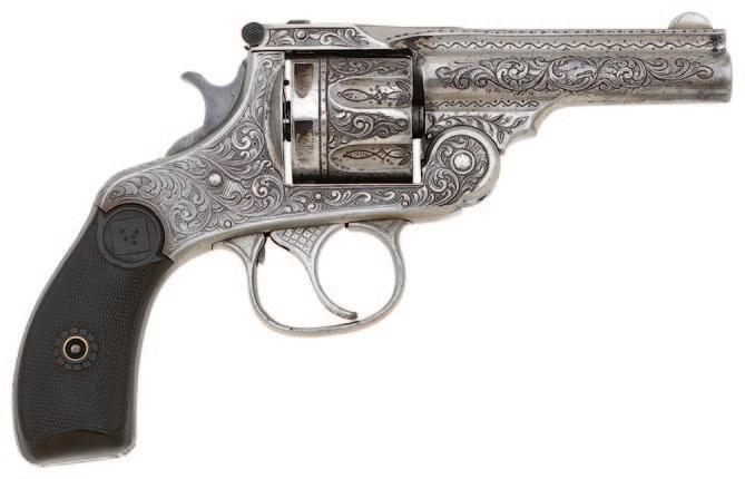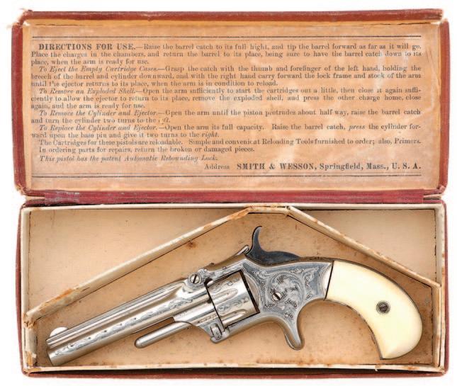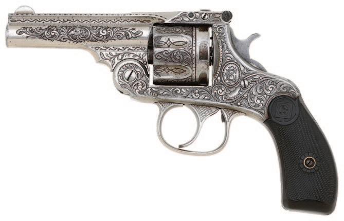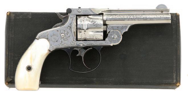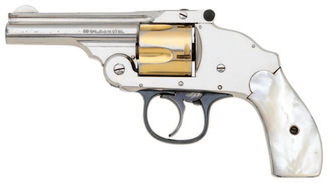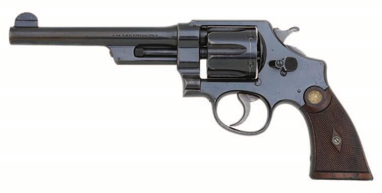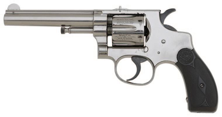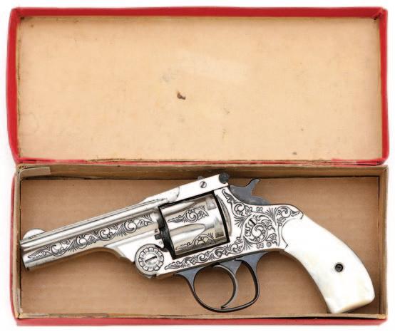 serial #329506, 32 Colt New Police (S&W Long), 4” barrel with a bright excellent bore. This lovely 1930 revolver remains asnew-in-box with the metal surfaces retaining about 99% plus original blue. The checkered service trigger and hammer retain full blue with bright sides on the hammer. The un-numbered fully checkered walnut factory grips feature silver Rampant Colt medallions and remain in excellent condition. This gun features a half-moon front sight and fixed rear sight. It includes the original hinged maroon factory box that is correctly end labeled and numbered to the gun and a Colt special instruction pamphlet. The box rates about good with light staining, the front and left edges have several splits, there is light edge wear, and light peeling of the cloth backed covering along the hinge. The pamphlet rates good with oil staining. A truly fine example of a pre-war Police Positive. (8A11728-1565) {C&R} (1000/1500)