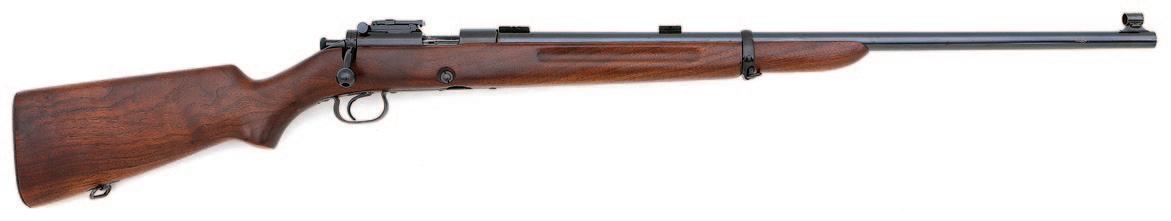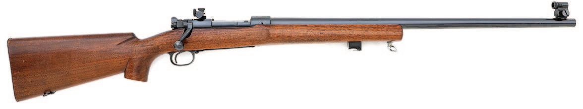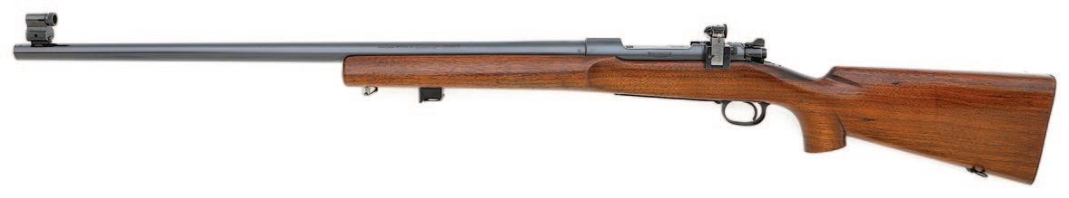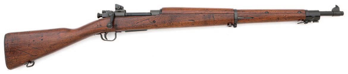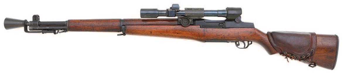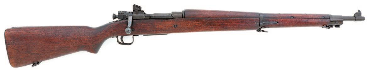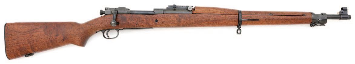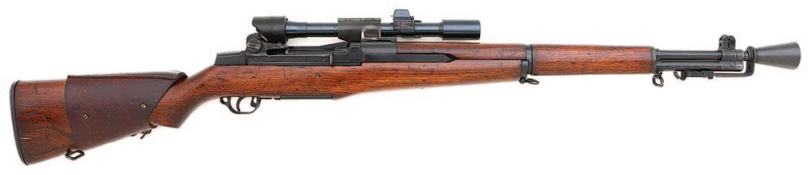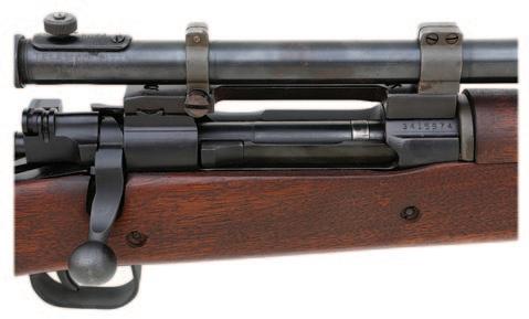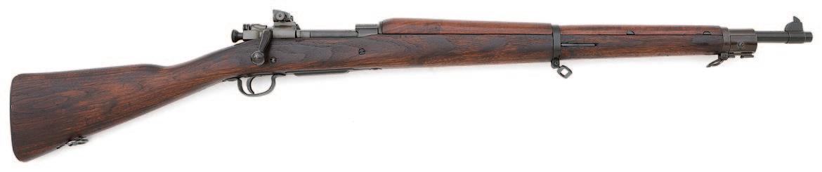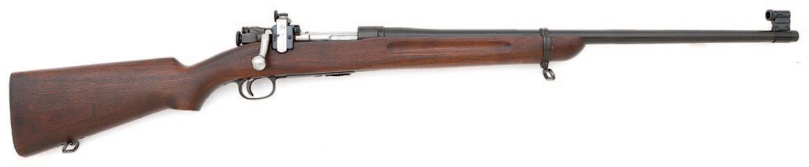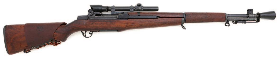 an “X” prefix after the receivers were heat treated to account for erroneous duplicate serial numbers. The metal surfaces retain about 99% original gray-green Parkerized finish with a few light handling marks here and there. The walnut stock is in excellent condition with a tiny ding near the tip of the forend and a few light handling marks, and is devoid of markings. The receiver markings remain crisp, the “X” beside the serial number clearly stamped, the barrel markings somewhat lightly struck but still easily legible, and the parts show Springfield Armory drawing numbers. The rifle retains the standard open sights with T105 rear sight drums, a milled triggerguard, and 2-slot gas cylinder screw, and appears function well mechanically. Mounted to the rear sight is an unmarked M2 aiming device, used to allow a coach to view the sight picture of a trainee. An interesting piece of M1 rifle history. (14B11856-4) {C&R} (2000/4000)