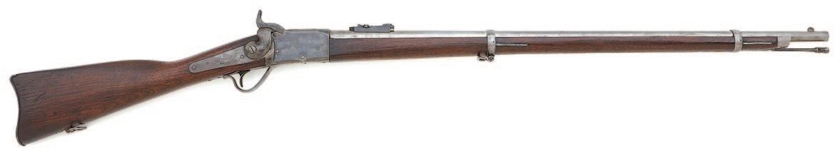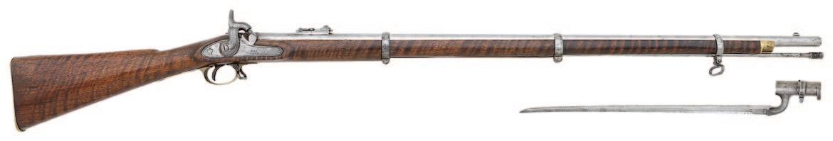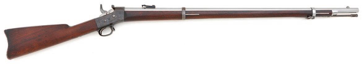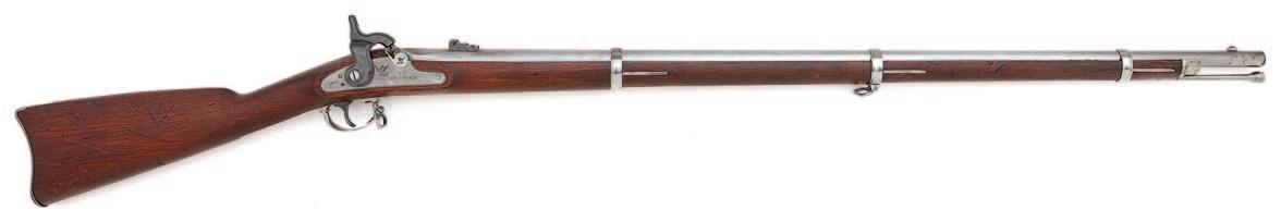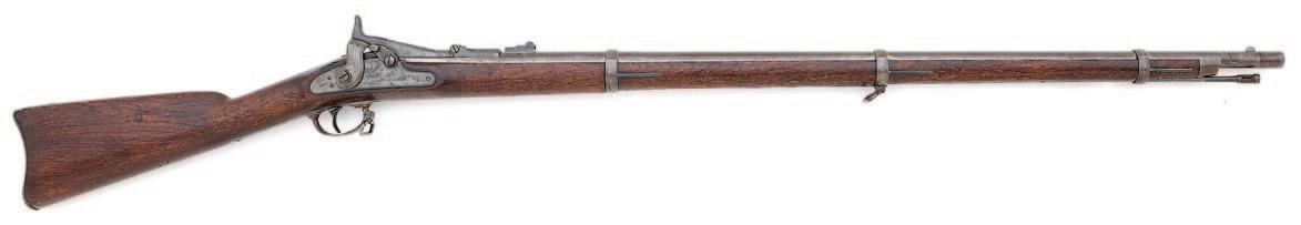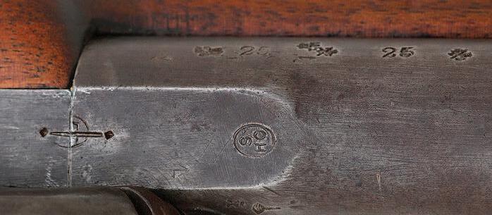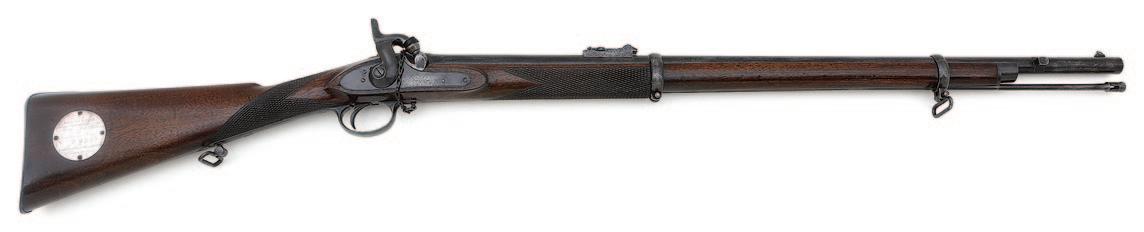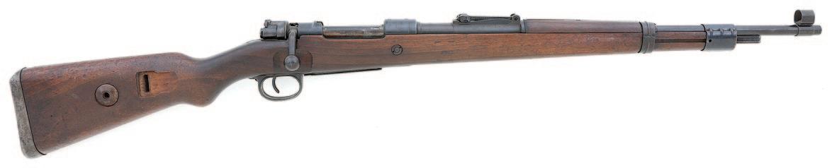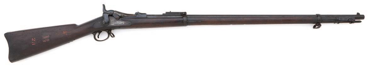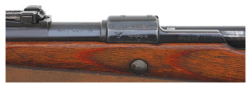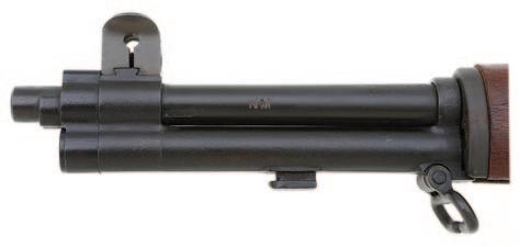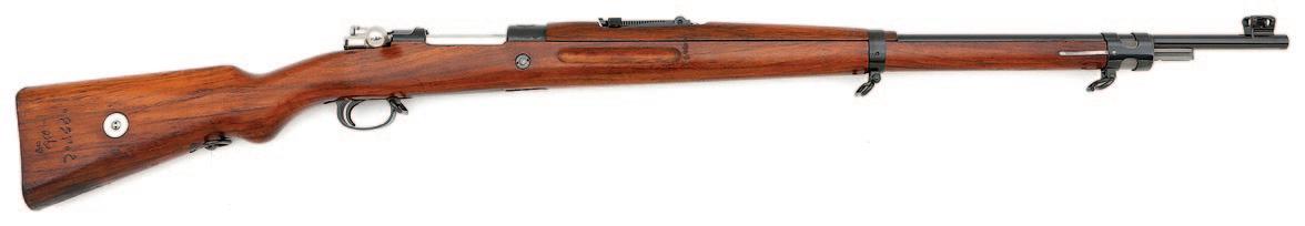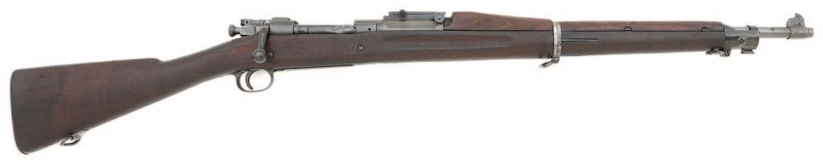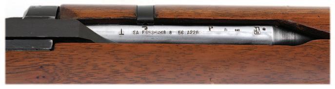 an “X” prefix after the receivers were heat treated to account for erroneous duplicate serial numbers. The metal surfaces retain about 99% original gray-green Parkerized finish with a few light handling marks here and there. The walnut stock is in excellent condition with a tiny ding near the tip of the forend and a few light handling marks, and is devoid of markings. The receiver markings remain crisp, the “X” beside the serial number clearly stamped, the barrel markings somewhat lightly struck but still easily legible, and the parts show Springfield Armory drawing numbers. The rifle retains the standard open sights with T105 rear sight drums, a milled triggerguard, and 2-slot gas cylinder screw, and appears function well mechanically. Mounted to the rear sight is an unmarked M2 aiming device, used to allow a coach to view the sight picture of a trainee. An interesting piece of M1 rifle history. (14B11856-4) {C&R} (2000/4000)