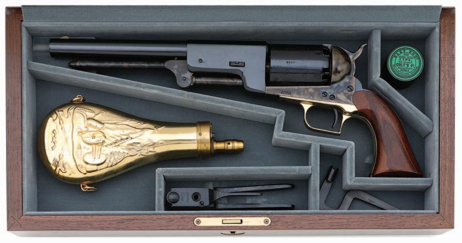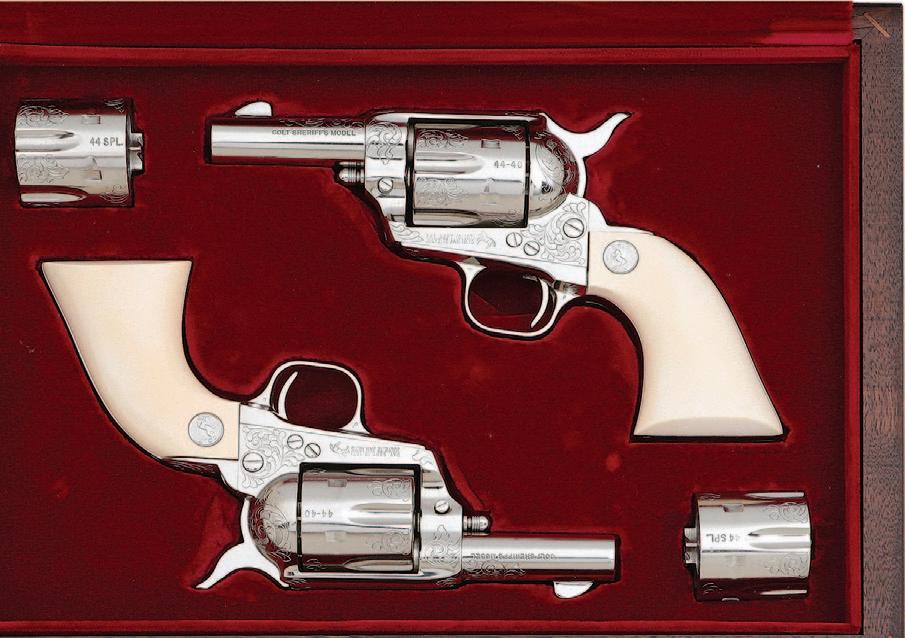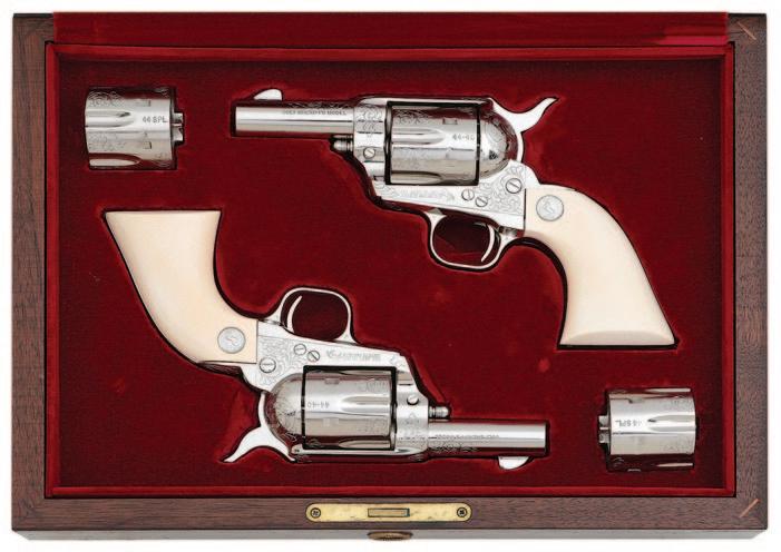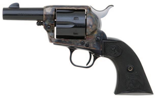 a Rampant Colt in an oval and remain in excellent condition. This gun has standard Single Action Army features, all ap propriate parts are correctly numbered to the gun, and is caliber marked “44-40” on the barrel. It includes the original factory box that is correctly end labeled and numbered to the gun, manual, and paperwork. A fantastic op portunity to add this scarce and unusual variant to your collection and it would make a great companion piece to the gun in the following lot. (8B11728-1428) {MODERN} (2000/3000)