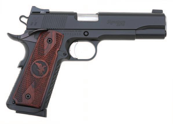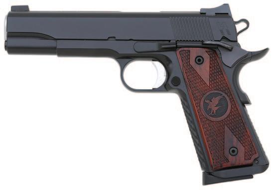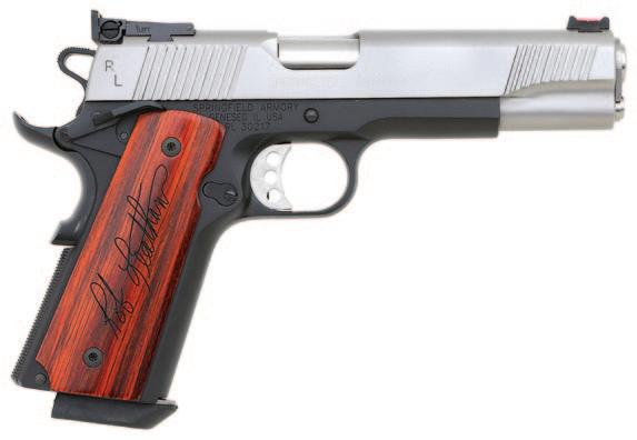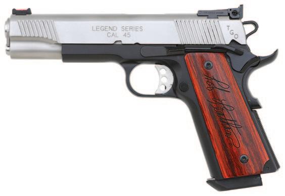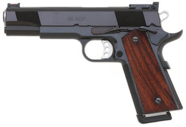 with minor handling and assembly marks although the slide stop has toned to plum. The fully checkered factory coco bolo grips rate about excellent. This gun has many features the 1911 aficionados love including undercut serrated Patridge front sight with red fiber optic insert, Dawson Bo-Mar style green fiber optic adjustable rear sight, extended slide stop safety, am bidextrous extended thumb safeties, checkered straps, fore and aft cocking serrations, beavertail safety with memory bump, accuracy and trigger job, and long trigger with overtravel stop. These are fine guns, the standard grades are guaranteed to produce 3” groups at 50 yards with good ammunition. It includes a Plano hard case, a pair of unmarked factory eight-round magazines with removable floorplates, and a single Randall marked seven-round magazines. A great example of these finely crafted pistols. (8B11983-9) {MODERN}