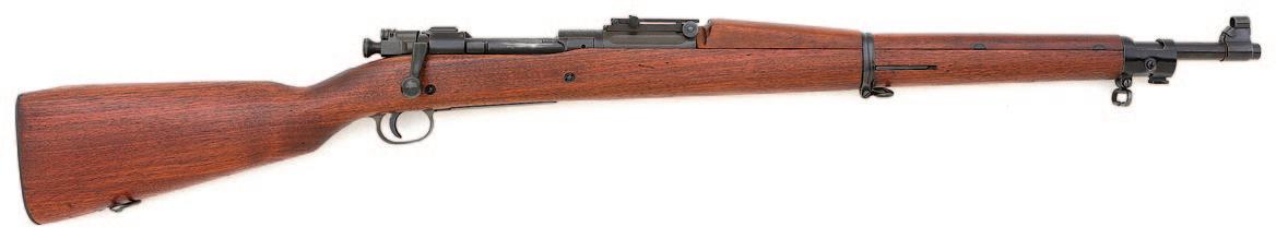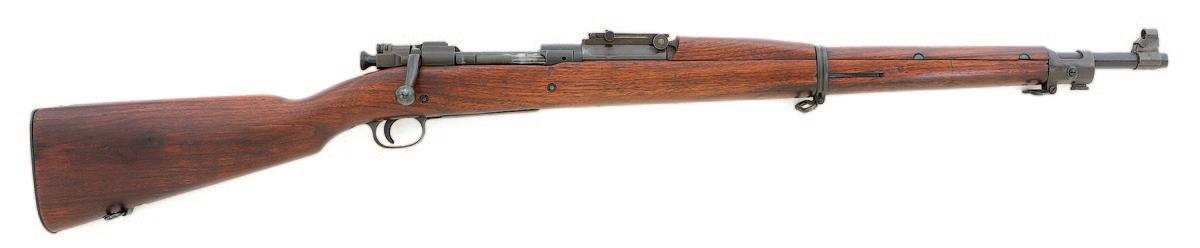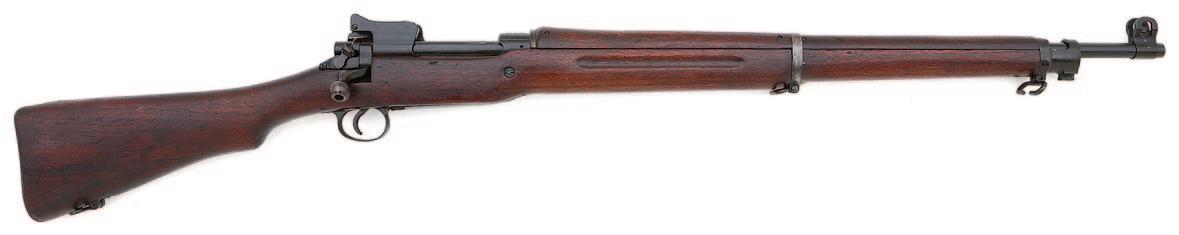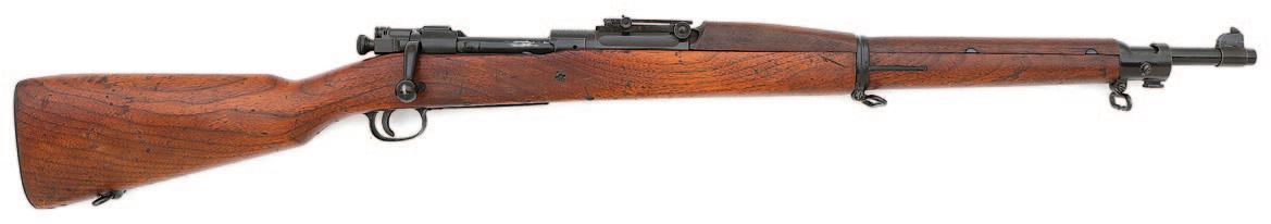 impact marks on the handguards, and scattered light handling marks consistent with a military service rifle. The stock is marked with a very good 1/2” DoD acceptance stamp and bold circled “P”. The receiver and barrel markings remain crisp, the small parts show HRA drawing numbers, and the gas cylinder screw is HRA-marked. The rifle retains the standard open sights with T105 rear sight drums, and appears to function well mechanically. A solid example of these desirable M1 rifles. (14A11856-7) {C&R} (1500/2000)